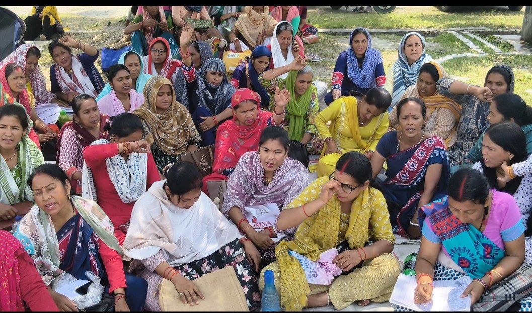 सितारगंज:(अश्वनी दीक्षित)आंगनबाड़ी कार्यकर्तियों, सेविकाओं और मिनी कर्मचारियों का आंदोलन अब निर्णायक मोड़ पर पहुंचता नजर आ रहा है। नवीन मंडी परिसर में पिछले 24 दिनों से लगातार जारी धरने में सैकड़ों महिलाएं अपनी मांगों को लेकर डटी हुई हैं और सरकार के खिलाफ जोरदार प्रदर्शन कर रही हैं। प्रदर्शनकारी चंद्रावती ने कहा कि वे लंबे समय से अपनी समस्याओं और मांगों को सरकार के समक्ष रखती आ रही हैं, लेकिन अब तक कोई ठोस कार्रवाई नहीं हुई, जिससे कार्यकर्तियों में गहरा आक्रोश है। उन्होंने स्पष्ट किया कि उनकी प्रमुख मांगों में न्यूनतम 18,000 रुपये प्रतिमाह मानदेय सुनिश्चित करना, कार्य का दायरा सीमित कर केवल विभागीय कार्य ही लिया जाना और सम्मानजनक कार्य परिस्थितियां उपलब्ध कराना शामिल है। कार्यकर्तियों ने चेतावनी देते हुए कहा कि यदि उनकी मांगों को जल्द पूरा नहीं किया गया तो 28 अप्रैल को प्रदेश स्तर पर बड़ा और उग्र आंदोलन किया जाएगा, जिसकी पूरी जिम्मेदारी शासन-प्रशासन की होगी। धरना स्थल पर कांग्रेस नेता करण जंग ने पहुंचकर आंदोलन को समर्थन देते हुए कहा कि आंगनबाड़ी कार्यकर्तियां समाज की रीढ़ हैं और उनके साथ हो रहा अन्याय बर्दाश्त नहीं किया जाएगा, उनकी मांगों को सरकार को प्राथमिकता के आधार पर पूरा करना चाहिए। इस दौरान पूर्व चेयरमैन हरीश दुबे, नवतेज पाल, आंगनबाड़ी कार्यकर्ती जिला अध्यक्ष। चंद्रावती, परमजीत कौर, मनजीत कौर ,बलविंदर कौर ,सुखजीत कौर ,रणदीप कौर , शबाना ,शमा ,जीनत, राधा भंडारी, ममता पाठक ,कुसुमावती, दुर्गावती, सहित कई स्थानीय जनप्रतिनिधियों की मौजूदगी ने आंदोलन को और मजबूती दी। लगातार बढ़ती भीड़ और आक्रोश को देखते हुए साफ है कि यदि जल्द समाधान नहीं निकला तो यह आंदोलन आने वाले दिनों में और व्यापक रूप ले सकता है।