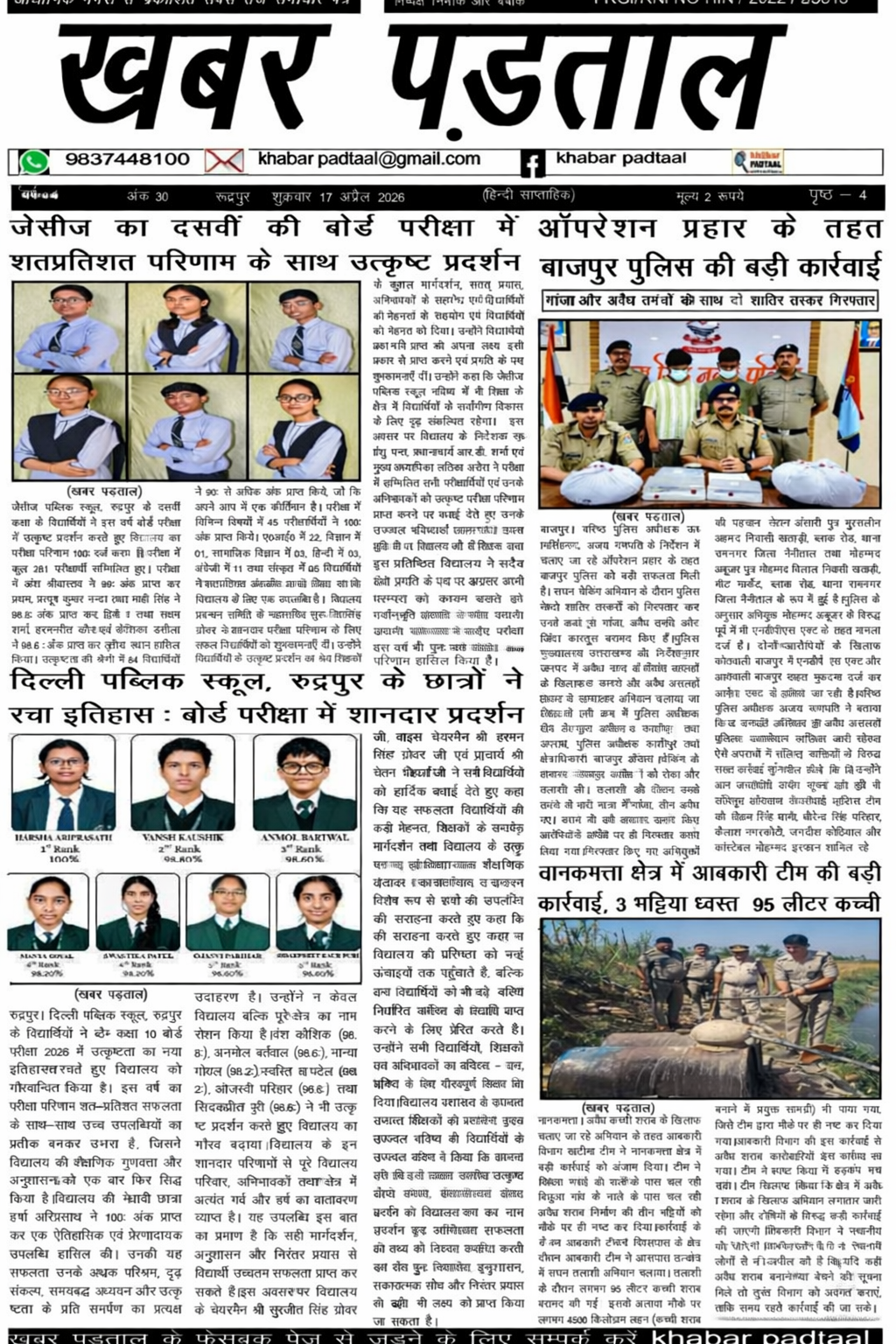 खटीमा। माननीय आबकारी आयुक्त के आदेश एवं जिला आबकारी अधिकारी उधम सिंह नगर के निर्देश पर अवैध मादक द्रव्यों के निर्माण, बिक्री और भंडारण के विरुद्ध चलाए जा रहे अभियान के तहत क्षेत्र-2 खटीमा आबकारी टीम ने वन विभाग के साथ संयुक्त कार्रवाई करते हुए बड़ी सफलता हासिल की।संयुक्त टीम द्वारा आलावर्दी क्षेत्र के किलपुरा रेंज में नाले के किनारे संचालित अवैध शराब निर्माण स्थलों पर छापेमारी की गई। कार्रवाई के दौरान मौके पर चल रही तीन अवैध भट्टियों को ध्वस्त कर दिया गया। वहीं आसपास की तलाशी के दौरान लगभग 60 लीटर कच्ची शराब बरामद की गई।इसके अतिरिक्त मौके पर पाए गए लगभग 2000 किलोग्राम लहन को भी नष्ट कर दिया गया, जिससे अवैध शराब निर्माण की बड़ी गतिविधि को समय रहते रोक दिया गया।आबकारी निरीक्षक बृजेश जोशी ने बताया कि अवैध शराब के निर्माण और तस्करी के खिलाफ विभाग का अभियान लगातार जारी रहेगा। उन्होंने कहा कि अवैध गतिविधियों में संलिप्त लोगों के विरुद्ध सख्त कार्रवाई की जाएगी तथा ऐसे स्थानों पर नियमित रूप से छापेमारी अभियान चलाया जाएगा।आबकारी विभाग और वन विभाग की इस संयुक्त कार्रवाई से अवैध शराब कारोबारियों में हड़कंप मच गया है।