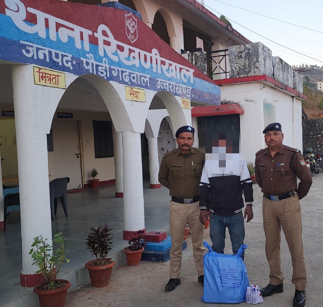 पौड़ी/श्रीनगर गढ़वाल। मुख्यमंत्री द्वारा वर्ष-2025 तक उत्तराखण्ड को नशामुक्त (“ड्रग्स फ्री देवभूमि”) बनाये जाने हेतु चलाये जा रहे अभियान के क्रम में वरिष्ठ पुलिस अधीक्षक पौड़ी लोकेश्वर सिंह के निर्देशन में बढते नशे की प्रवृत्ति पर अंकुश लगाने हेतु पौड़ी पुलिस द्वारा नशा तस्करों पर लगातार शिकंजा कसा जा रहा है,नशा तस्करों के विरुद्ध लगातार अभियान चलाकर उनके विरुद्ध कड़ी से कड़ी कार्यवाही की जा रही है इसी क्रम में थाना रिखणीखाल पुलिस द्वारा अपने थाना क्षेत्रांतर्गत अलग-अलग जगहों पर चेकिंग के दौराने एक व्यक्ति पंकज कुमार निवासी-गुनेडी रिखणीखाल को 56 पब्वे अवैध अग्रेजी शराब (सोलमेट व्हिस्की) के साथ गिरफ्तार किया गया। यह व्यक्ति शराब को दूसरे गांवों में सप्लाई करने का कार्य कर रहा था। इस संबंध पंकज कुमार के विरुद्ध थाना रिखणीखाल पर आबकारी अधिनियम बनाम पंकज कुमार पंजीकृत कर अभियुक्त के विरूद्ध आवश्यक वैधानिक कार्यवाही की गयी।
