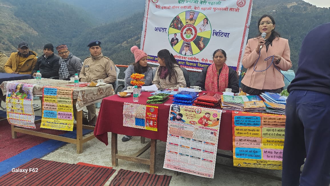 थलीसैंण/श्रीनगर गढ़वाल। महिला सशक्तिकरण एवं बाल विकास विभाग के तत्वाधान में विकासखंड थलीसैंण के राजकीय इंटर कॉलेज बगवाड़ी में बेटी बचाओ बेटी पढ़ाओ के अंतर्गत अफसर बिटिया थीम पर कार्यक्रम आयोजित किया गया। कार्यक्रम का शुभारंभ बाल विकास परियोजना अधिकारी चंद्रकांत काला द्वारा किया गया। मंगलवार को आयोजित कार्यक्रम में बाल विकास परियोजना अधिकारी ने छात्राओं को उनके अधिकार,समाज में पुरुषों के बराबर समानता महिलाओं को समान अवसर,लिंगानुपात,पोक्सो एक्ट महिलाओं व किशोरी बालिकाओं संबंधी अपराध एवं दुर्व्यवहार संबंधित घटनाओं पर समाज में अपनी भागीदारी सहित अन्य की जानकारी दी। इसके अलावा पुलिस विभाग,स्वास्थ्य विभाग व शिक्षा विभाग के अधिकारियों द्वारा भी बालिकाओं को विस्तृत जानकारी दी गई। कार्यक्रम में विद्यालय के प्रधानाचार्य जसवंती नेगी,ब्लॉक कोऑर्डिनेटर दीपा भंडारी,सुपरवाइजर साम्वरी भट्ट,सुरक्षा विभाग से सुनील पंवार,आंगनबाड़ी कार्यकर्ती आरती बगवाड़ी व आदि उपस्थित थे।