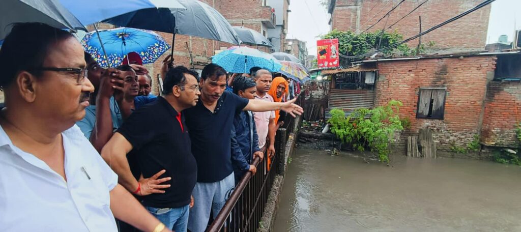 रुद्रपुर। आज विधायक शिव अरोरा ने नदी किनारे लगते हुए क्षेत्र जिनको कुछ समय पूर्व प्रशासन द्वारा अतिक्रमण के नोटिस थामा दिये थे जिसके चलते उन क्षेत्र मे उनके आशियाना उजाड़े का खतरा मंडराने लगा था उन क्षेत्र का विधायक द्वारा भारी बरसात के बीच पैदल भ्रमण कर मौके की स्थिति को जाना जिसमे विधायक शिव अरोरा द्वारा संजय नगर खेड़ा, जगतपुरा, अरविन्द नगर, मुखर्जी नगर क्षेत्र का दौरा किया। वही विधायक शिव अरोरा ने स्थानीय लोगो संग उनके क्षेत्र मे 20-20 मीटर तक लगाये गये अतिक्रमण के निशान व उनको मिले नोटिस वाले चिन्हित क्षेत्रों का दौरा किया मौके की स्थिति देखी, साथ हीं विधायक ने हर जगह पर नदी के स्वरूप आकार को देखा ओर बोले निश्चित रूप से एक गरीब के लिये उनका आशियाना उसके जीवन भर की पूंजी मेहनत की कमाई होती है ओर मै जनता का विधायक हूँ ओर सदैव जनहित को सर्वोपरि रख के कार्य करने मे विश्वास रखता हूँ ऐसे मे प्रशासन द्वारा थामये गये नोटिस से लोगो मे भय का वातावरण है मगर हमको नदी के स्वरूप को भी ध्यान रखना चाहिए की वह अपने न्यूनतम आकार मे रहते हुए पानी की निकासी करती रहे जिससे हमारे क्षेत्र मे जलभराव की स्थिति न हो हमने नदी के अस्तित्व को बचाते हुए ओर लोगो का कम से कम नुकसान के साथ ऐसे कार्य करना है.