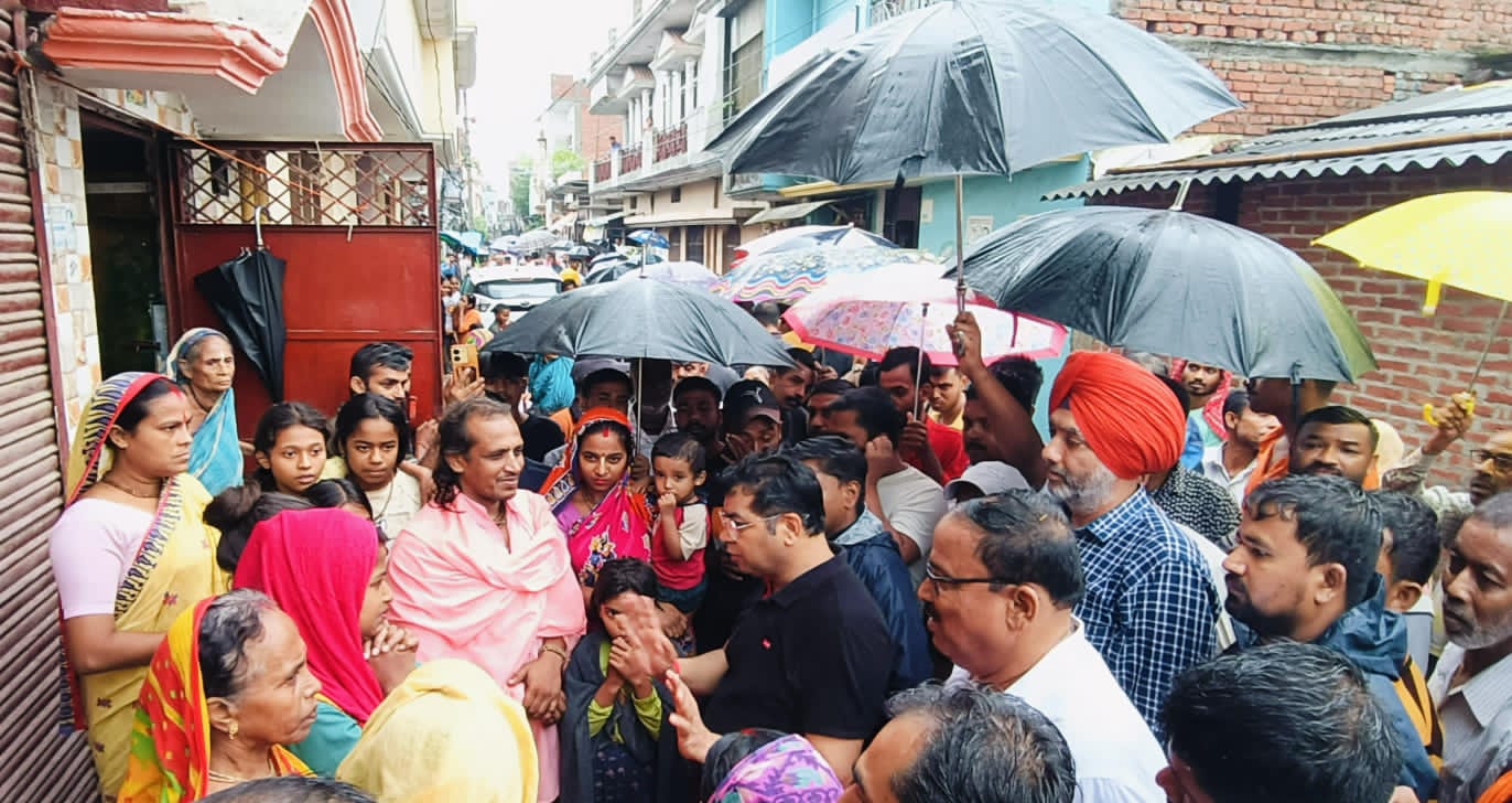 रुद्रपुर। आज विधायक शिव अरोरा ने नदी किनारे लगते हुए क्षेत्र जिनको कुछ समय पूर्व प्रशासन द्वारा अतिक्रमण के नोटिस थामा दिये थे जिसके चलते उन क्षेत्र मे उनके आशियाना उजाड़े का खतरा मंडराने लगा था उन क्षेत्र का विधायक द्वारा भारी बरसात के बीच पैदल भ्रमण कर मौके की स्थिति को जाना जिसमे विधायक शिव अरोरा द्वारा संजय नगर खेड़ा, जगतपुरा, अरविन्द नगर, मुखर्जी नगर क्षेत्र का दौरा किया। वही विधायक शिव अरोरा ने स्थानीय लोगो संग उनके क्षेत्र मे 20-20 मीटर तक लगाये गये अतिक्रमण के निशान व उनको मिले नोटिस वाले चिन्हित क्षेत्रों का दौरा किया मौके की स्थिति देखी, साथ हीं विधायक ने हर जगह पर नदी के स्वरूप आकार को देखा ओर बोले निश्चित रूप से एक गरीब के लिये उनका आशियाना उसके जीवन भर की पूंजी मेहनत की कमाई होती है ओर मै जनता का विधायक हूँ ओर सदैव जनहित को सर्वोपरि रख के कार्य करने मे विश्वास रखता हूँ ऐसे मे प्रशासन द्वारा थामये गये नोटिस से लोगो मे भय का वातावरण है मगर हमको नदी के स्वरूप को भी ध्यान रखना चाहिए की वह अपने न्यूनतम आकार मे रहते हुए पानी की निकासी करती रहे जिससे हमारे क्षेत्र मे जलभराव की स्थिति न हो हमने नदी के अस्तित्व को बचाते हुए ओर लोगो का कम से कम नुकसान के साथ ऐसे कार्य करना है.