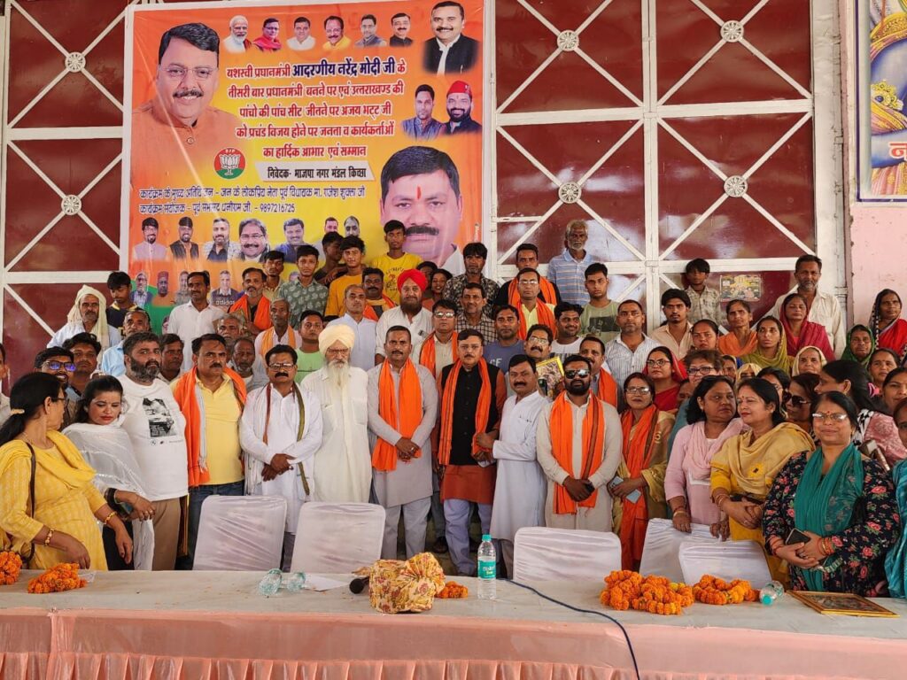 आयोजित कार्यक्रम को संबोधित करते हुए पूर्व विधायक राजेश शुक्ला ने कहा कि यह जनता के विश्वास की जीत है, आजाद भारत में पहली बार ऐसा हो रहा है कि कोई गैर कांग्रेसी प्रधानमन्त्री तीसरी बाद प्रधानमंत्री पद की शपथ ले रहा है। पूर्व विधायक राजेश शुक्ला ने कहा कि लोकसभा चुनाव में एनडीए की यह ऐतिहासिक विजय प्रधानमंत्री नरेंद्र मोदी जी की नीतियों पर जनता जनार्दन के अटल विश्वास की जीत है, विकसित भारत का हमारा ध्येय लगातार तीसरे कार्यकाल में नए आयाम प्राप्त करेगा। सेवा, सुशासन और विकास का संकल्प लेकर अंत्योदय का हमारा प्रण देश के अंतिम पंक्ति में खड़े व्यक्ति को सशक्त करने के साथ ही उनके आत्मविश्वास को नए पंख देगा। भारत की राजनीति अब नए युग में प्रवेश कर रही है, जहां देश की जनता ने जातिवाद, परिवारवाद और तुष्टीकरण को नकार कर विकासवाद और राष्ट्रवाद को चुना है। यह विजय भारत के जन-जन की विजय व पुनर्जागरण की विजय है। 1962 के बाद पहली बार कोई सरकार अपने दो कार्यकाल पूरे करने के बाद तीसरी बार वापस आई है,कहा कि चाहे चुनाव की बेला हो, देश का नेतृत्व करने की बात हो और देश की को समस्याओं से निकालने की बात हो- मोदी जी ने हमेशा देश और देश की जनता को आगे बढ़ने का काम किया है।पूर्व विधायक राजेश शुक्ला ने कहा कि विपक्ष द्वारा पूरे चुनाव यह भ्रम फैलाया गया कि सांसद अजय भट्ट जी द्वारा विकास कार्य नहीं किया गया है लेकिन जनता ने 3 लाख से अधिक के अंतर से अजय भट्ट जी को जीताकर यह साबित किया कि क्षेत्र का विकास भारतीय जनता पार्टी ही कर सकती है। प्रदेश व देश की डबल इंजन की सरकार के कार्यों पर जनता ने मोहर लगाकर प्रदेश की पांचो सीटें भाजपा की झोली में डालने का काम किया है, इस ऐतिहासिक विजय के लिए प्रधानमंत्री नरेंद्र मोदी एवं मुख्यमंत्री पुष्कर सिंह धामी बधाई के पात्र हैं। मंडल अध्यक्ष मनमोहन सक्सेना, कार्यक्रम संयोजक धनीराम, धर्मराज जायसवाल, महेंद्र पाल, संदीप अरोरा, भगवान दास वर्मा, अमरनाथ कश्यप, मंडल मंत्री पूरन भट, प्रकाश पंत, अनुसूचित मोर्चा अध्यक्ष राजेश कोली, विनोद कोली, महेंद्र पाल, मुकेश कोली, मूलचंद कोली, राकेश गुप्ता, अभिषेक सक्सेना, गोल्डी गोराया, सुरेंद्र चौधरी, हीरालाल प्रजापति, नंदलाल प्रजापति, भगत सिंह, जसवंत सिंह, मोहनलाल पूनम अग्रवाल, दया डसिला, आरती डूबे, ज्योति जरिया, शैल शुक्ला, अंजनी सोनी, बीना गंगवार समेत सैकड़ों कार्यकर्ता व वार्डवासी उपस्थित थे।