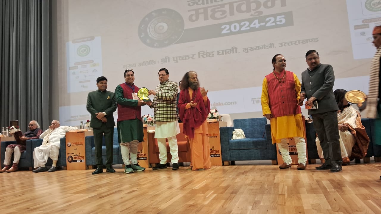 देहरादून/श्रीनगर गढ़वाल। ज्योतिष महाकुंभ के समापन समारोह के अवसर पर मुख्यमंत्री पुष्कर सिंह धामी ने आचार्य डॉ.चंडी प्रसाद घिल्डियाल को अति विशिष्ट ब्रह्म कमल सम्मान से सम्मानित किया है। विगत दो दिवस से देहरादून के ग्राफिक एरा डीम्ड विश्वविद्यालय में चल रहे राष्ट्रीय ज्योतिष सम्मेलन के समापन समारोह में पहुंचे मुख्यमंत्री ने कहा कि डॉ.चन्डी प्रसाद घिल्डियाल शिक्षा-संस्कृत शिक्षा के सहायक निदेशक की बड़ी जिम्मेदारी के साथ-साथ ज्योतिष के माध्यम से उत्तराखंड ही नहीं अंतरराष्ट्रीय समाज का मार्गदर्शन करने की महत्वपूर्ण जिम्मेदारी भी निभा रहे हैं, जो एक चुनौती पूर्ण कार्य है। मुख्यमंत्री ने कहा कि ब्रह्म कमल उत्तराखंड का राज्य पुष्प है,और हमारा मानना है कि डॉ.चंडी प्रसाद घिल्डियाल पूरे अंतरराष्ट्रीय जगत में उत्तराखंड से फैल रही इस दिव्य पुष्प की सुगंध के समान महक रहे हैं,इसके लिए उन्हें यह अति विशिष्ट सम्मान पूरे देश में पहली बार दिया जा रहा हैं। सम्मान प्राप्त करने पर डॉ.चंडी प्रसाद घिल्डियाल ने कहा कि वह शिक्षा और संस्कृत शिक्षा के विकास के साथ-साथ भारतीय सभ्यता और संस्कृति के मूल में जो पूर्ण विज्ञान ज्योतिष है,उसके प्रति युवा पीढ़ी को भी जागरूक करना चाहते हैं,उन्होंने पूरे देश में पहली बार ब्रह्म कमल सम्मान देने के लिए मुख्यमंत्री का आभार जताया। मौके पर पूरे देश से ज्योतिष की विभिन्न विधाओं के विशेषज्ञ उपस्थित थे।