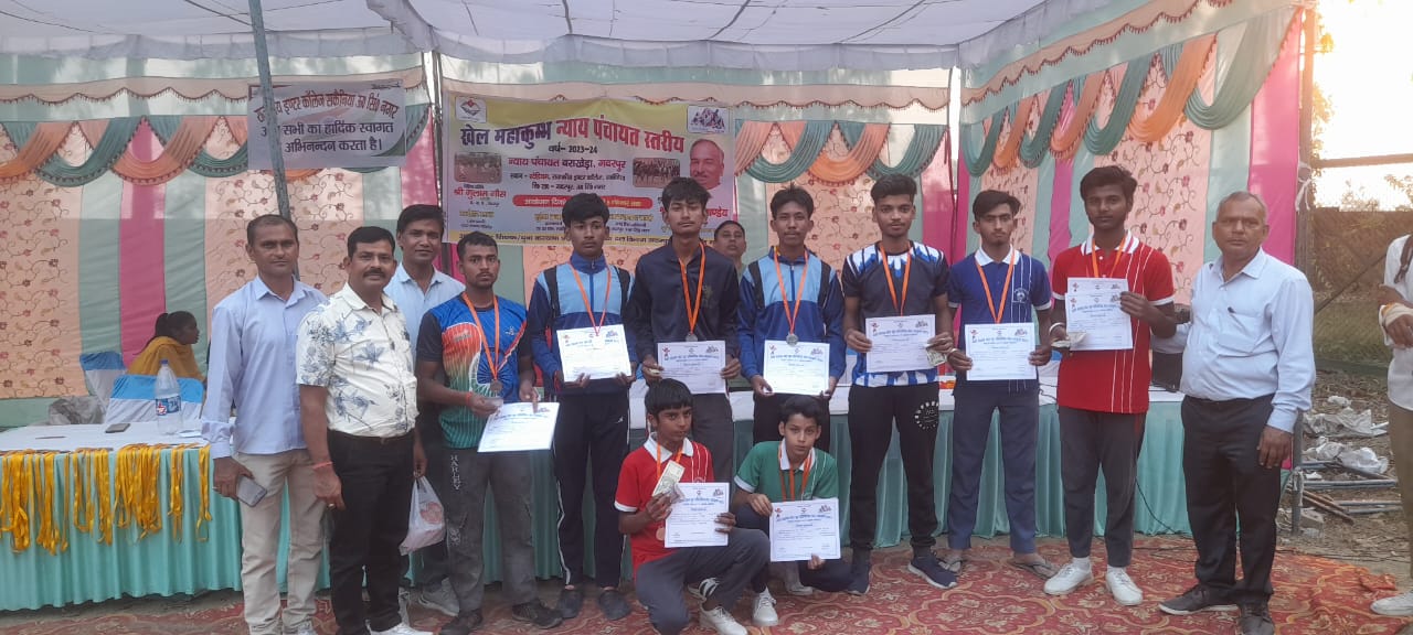 गदरपुर । खेल स्टेडियम सकैनिया में 08/11/23 को न्याय पंचायत स्तरीय तीन दिवसीय खेल महाकुंभ का समापन प्रधानाचार्य सुरेश प्रजापति व खेल प्रभारी मनोहर लाल ने सभी खिलाड़ियों को मेडल, प्रमाण पत्र,नगद धनराशि देकर पुरस्कृत किया।उन्होंने सभी प्रतिभागी खिलाड़ी बच्चों को शुभकामनाए देते हुए उनके उज्जवल भविष्य की कामना की ।लेखा कार्य श्रीमती रमा छाबड़ा व पंकज सिंह चौहान एवं प्रशांत कुमार सिंह ने मंच संचालन का कार्य किया ।निर्णायक डी पी सिंह,मिनती रानी,शालिनी आर्य,अशोक कुमार गुप्ता ,सूरज सिंह डसीला,जफरुद्दीन,साक्षी चौधरी, विजय सिंह अमित कुमार ब्रजपाल सिंह, भूपेन्द्र सिंह,आदि शिक्षक व बच्चे उपस्थित रहे।