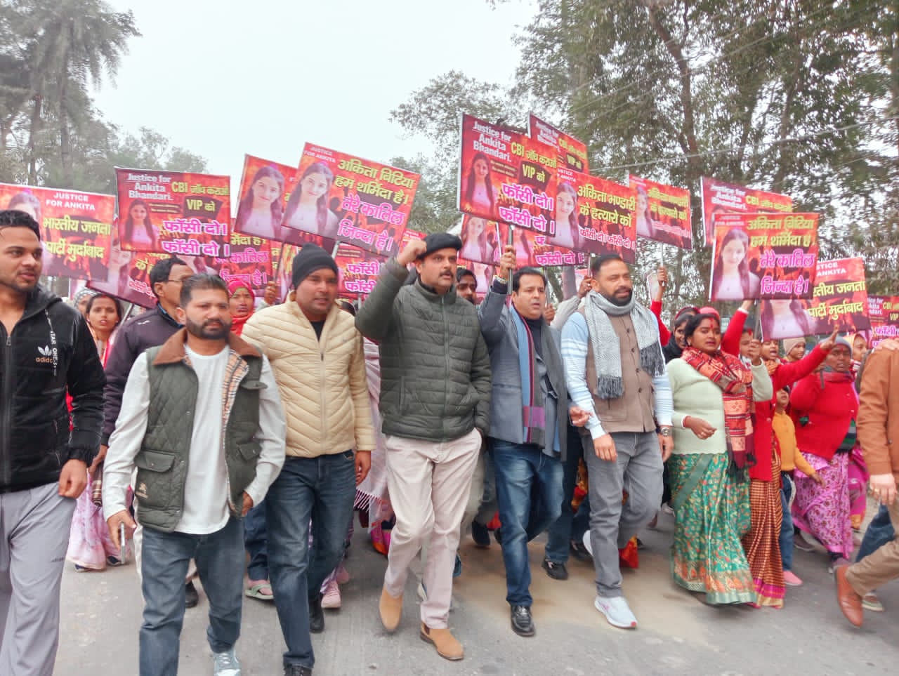 गूलरभोज आदि ग्रामीण क्षेत्रों से मातृशक्ति ने प्रतिभाग किया,जो कि अंकिता भंडारी के हत्यारों को फांसी दो, सजा दो, के स्लोगन लिखी तख्तियां व बैनर लेकर प्रदर्शन करते हुए पहुंची । इस दौरान इंद्रपाल सिंह संधू, गुरविंदर विर्क ,शैलेंद्र शर्मा, हरभजन सिंह ,विजय प्रधान, विजय कुमार ,गगनदीप सिंह, संजीव अरोड़ा,दीपिका गुड़िया, मोहन जी,काशीपुर महानगर अध्यक्ष पूजा सिंह,गौरव डंग,चंद्रा जोशी राजू डुमरा,भूपेंद्र कौर बेदी,फुरकान अहमद,अहमद अली तिवारी राजेश बाबा,