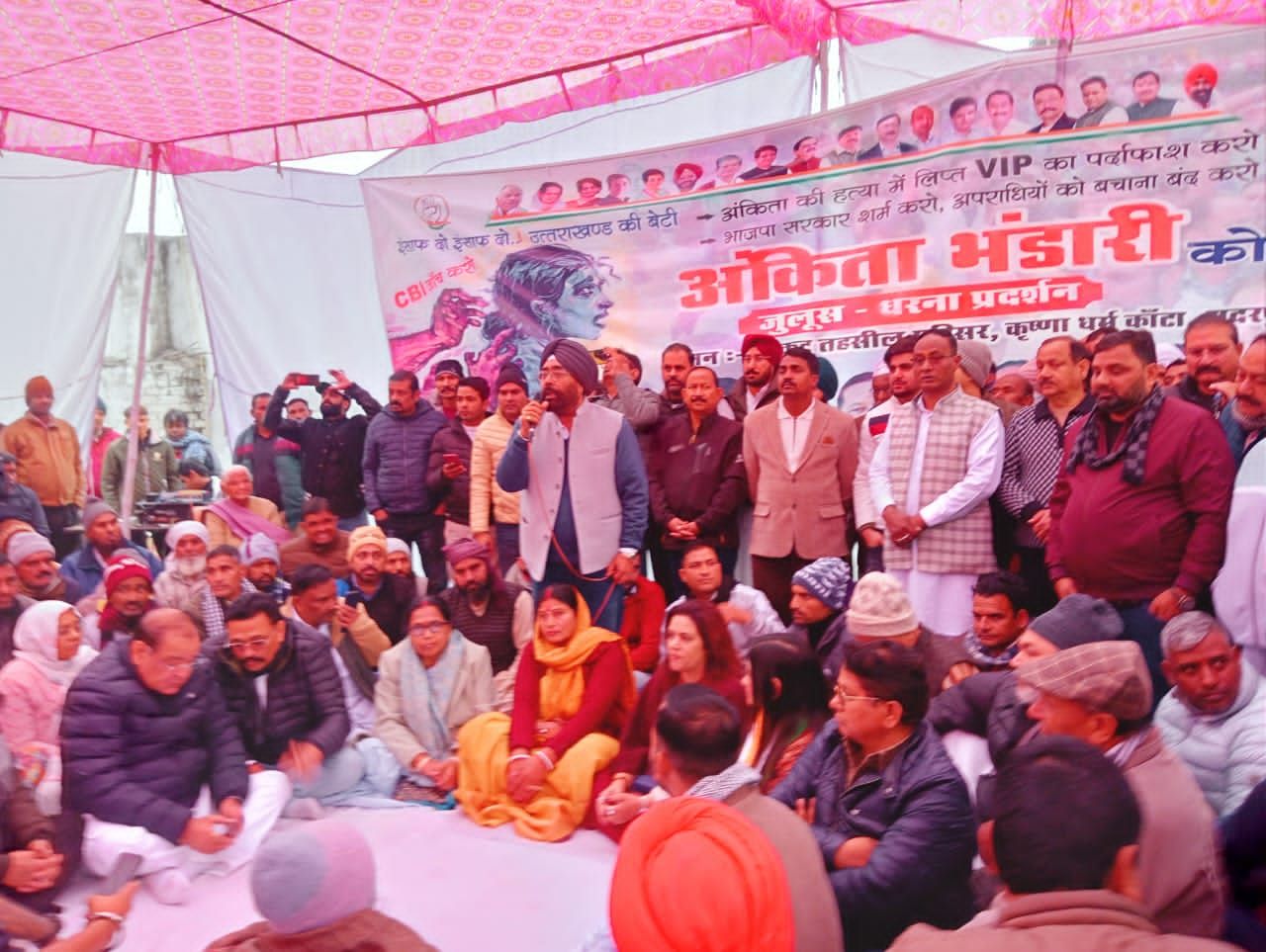 गदरपुर । बेटी बचाओ बेटी पढ़ाओ का नारा देने वाली उत्तराखंड की प्रदेश सरकार द्वारा अंकिता भंडारी के हत्यारों को बचाए जाने के विरोध में कांग्रेसियों द्वारा एक महा जनसभा करते हुए आक्रोश रैली आयोजित करने के साथ एक ज्ञापन तहसील मुख्यालय पहुंचकर उप जिलाधिकारी को सौंपा गया । राष्ट्रीय राजमार्ग 74 पर तहसील गदरपुर से रुद्रपुर रोड पर आयोजित जनसभा में पहुंचे नेता प्रतिपक्ष यशपाल आर्य ने आरोपियों को बचाने का आरोप लगाया,उनका कहना था कि प्रदेश सरकार एवं प्रदेश के मुख्यमंत्री आरोपियों के नाम उजागर होने के बावजूद, आरोपियों के विरुद्ध कोई कार्रवाई नहीं की जा रही । जिस पर पूरे प्रदेश भर में बेटी बचाओ बेटी पढ़ाओ के नारे लगाने वाली सरकार के विरुद्ध एक जन आक्रोश उमड़ पड़ा है और पूरे प्रदेश में जगह-जगह पर धरना प्रदर्शन रैलियां एवं ज्ञापन दिए जाने का क्रम जारी है वहीं वरिष्ठ कांग्रेस नेता राजेंद्र पाल सिंह ने कहा कि प्रदेश सरकार द्वारा अंकिता भंडारी के अलावा अन्य मातृशक्ति पर भी जुल्म किए गए हैं । जिन्हें आज तक न्याय नहीं मिला । जनसभा को श्री नानकमत्ता विधायक गोपाल सिंह राणा,जसपुर विधायक आदेश सिंह चौहान, किसान कांग्रेस नेता हरेंद्र सिंह लाडी,कांग्रेस जिलाध्यक्ष हिमांशु गाबा,ममता हालदार ,पूर्व पालिकाध्यक्ष अनिल सिंह,रुद्रपुर की पूर्व पालिकाध्यक्ष मीना शर्मा, दीपिका गुड़िया, पूर्व कांग्रेस जिलाध्यक्ष नारायण सिंह बिष्ट, मनोज देवराड़ी,सत्यजीत सिंह गुलाटी सहित तमाम वक्ताओं ने संबोधित किया । इस मौके पर भारी संख्या में दिनेशपुर,