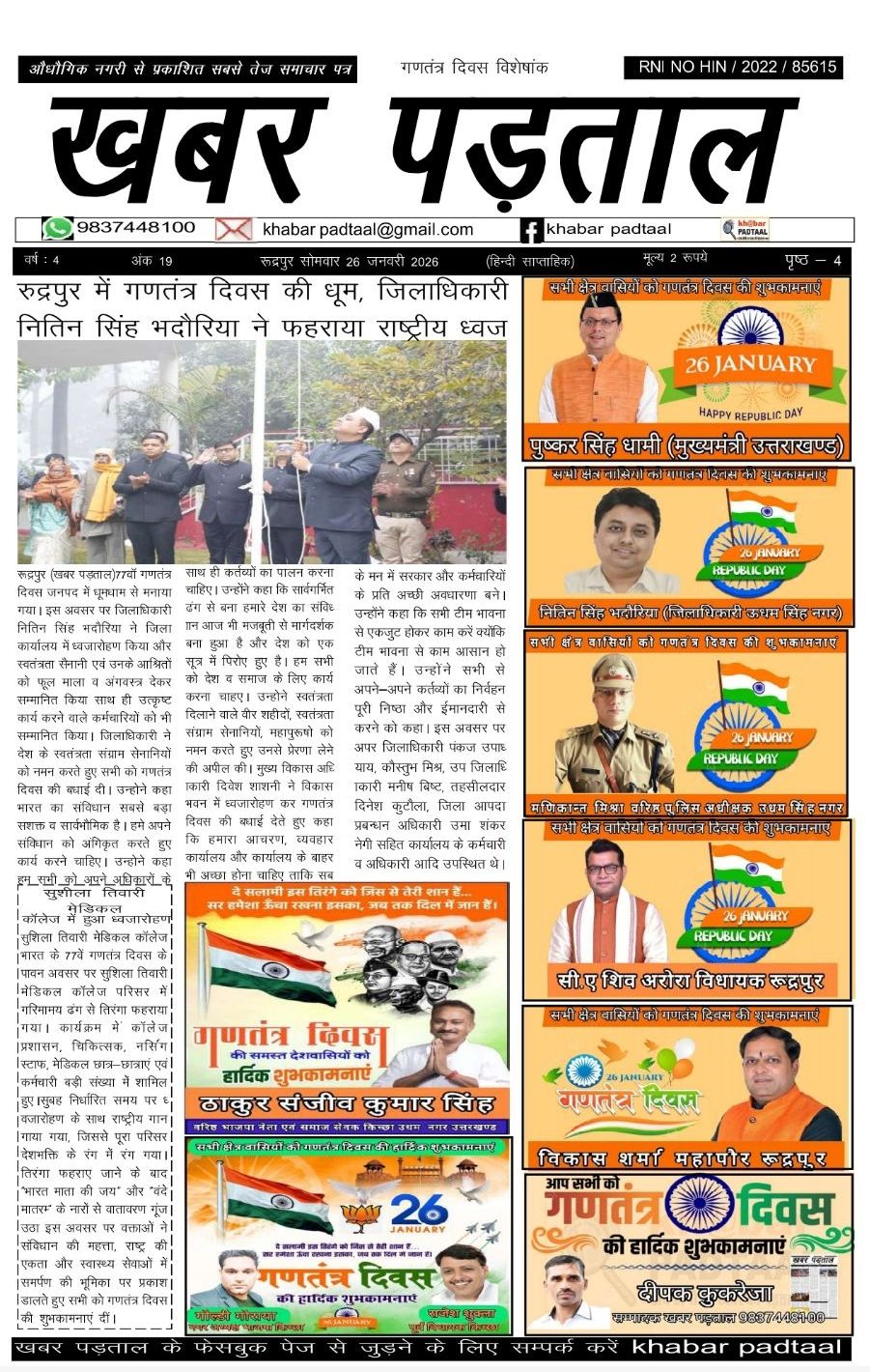 गदरपुर । 77वें गणतंत्र दिवस के अवसर पर गदरपुर में प्रांतीय उद्योग व्यापार मंडल द्वारा आयोजित कार्यक्रम में 100 वर्ष की आयु पूर्ण कर चुके शतायु बुजुर्गों के हाथों तिरंगा फहराये जाने के कार्यक्रम का शुभारंभ करवाया,नैनीताल बैंक के समीप आयोजित इस कार्यक्रम में 100