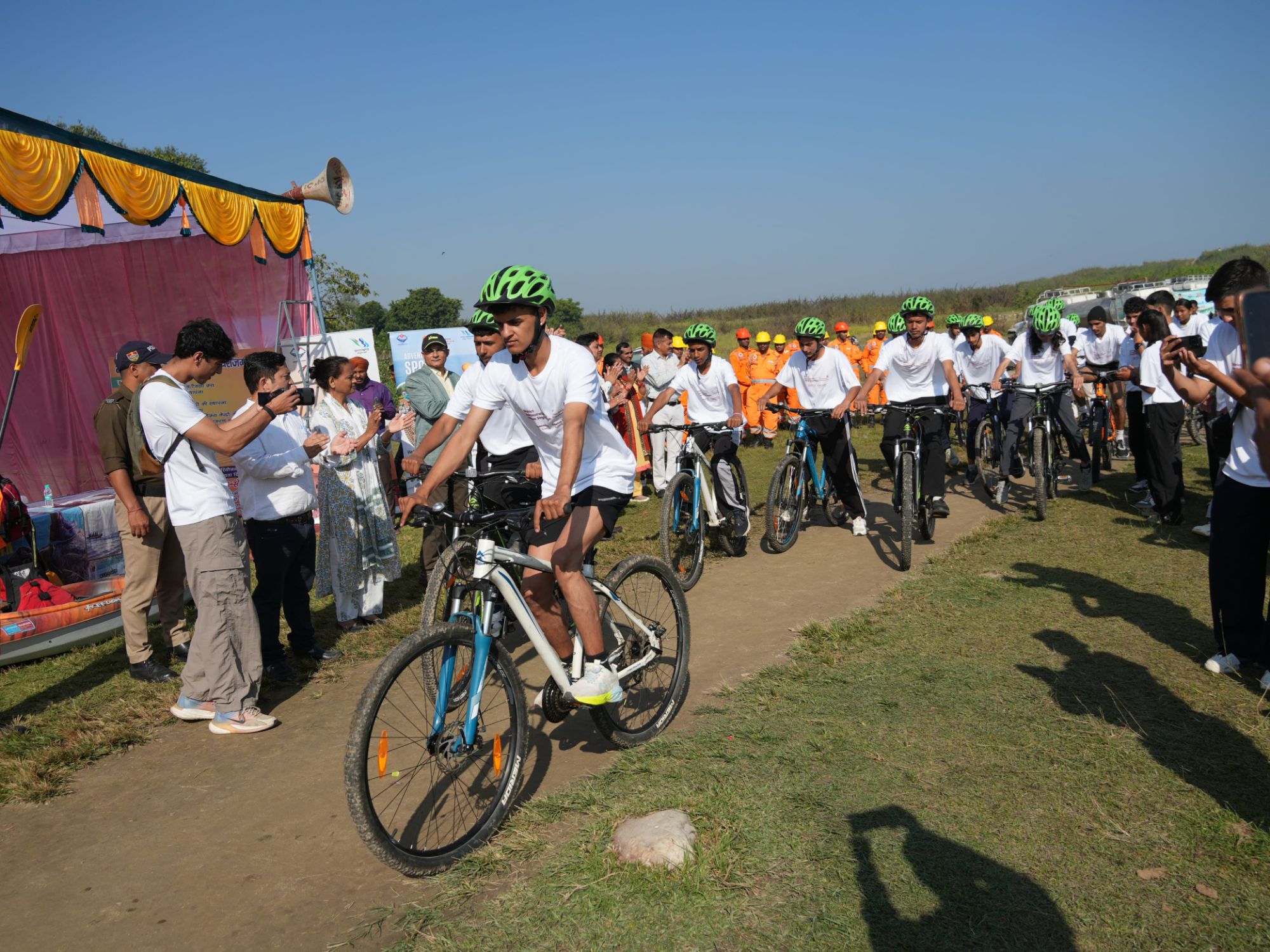 इसी क्रम में आज कार्यक्रम के दूसरे दिन ऑफ-रोड साइकिलिंग प्रतियोगिता का आयोजन किया गया। जिलाधिकारी श्री नितिन सिंह भदौरिया ने कार्यक्रम स्थल पर पहुंचकर साइकिलिंग प्रतियोगिता को हरी झंडी दिखाकर शुभारंभ किया। इस अवसर पर उन्होंने प्रतिभागियों से संवाद करते हुए कहा कि उत्तराखंड की प्राकृतिक संरचना और भौगोलिक विविधता साहसिक पर्यटन के लिए अनुकूल वातावरण प्रदान करती है। इस दिशा में राज्य सरकार के प्रयासों से नानकमत्ता जैसे स्थलों को ईको-एडवेंचर और वाटर स्पोर्ट्स के नए केंद्र के रूप में विकसित किया जा रहा है।जिलाधिकारी ने कहा कि “आज यह देखकर अत्यंत प्रसन्नता हो रही है कि कार्यक्रम में अपेक्षा से कहीं अधिक संख्या में युवाओं ने, विशेष रूप से महिला प्रतिभागियों ने, उत्साहपूर्वक हिस्सा लिया है। यह हमारे प्रदेश में बढ़ती खेल संस्कृति और युवाओं की ऊर्जा का प्रमाण है।” उन्होंने कहा कि प्रदेश के 25 वर्ष पूर्ण होने के इस ऐतिहासिक अवसर पर इस प्रकार के आयोजन न केवल पर्यटन को गति देंगे, बल्कि युवाओं को नई दिशा भी प्रदान करेंगे।उन्होंने आगे कहा कि नानक सागर क्षेत्र प्राकृतिक सौंदर्य, धार्मिक आस्था और साहसिक खेलों की संभावनाओं का अद्भुत संगम है। इसे राज्य सरकार द्वारा साहसिक पर्यटक केंद्र के रूप में विकसित किया जा रहा है, जहाँ ऑफ-रोड साइकिलिंग, हॉट एयर बैलूनिंग, कायाकिंग और अन्य वाटर स्पोर्ट्स गतिविधियों को भी शामिल किया गया है।