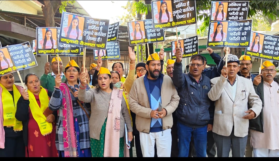 देहरादून, उत्तराखंड के बहुचर्चित अंकिता भंडारी हत्याकांड में हाल ही में सामने आए नए खुलासों और वायरल ऑडियो-वीडियो के मद्देनजर राष्ट्रवादी रीजनल पार्टी ने मामले की सीबीआई जांच तथा एसआईटी जांच को दोबारा शुरू करने की मांग को और तेज कर दिया है। पार्टी की प्रदेश अध्यक्ष सुलोचना ईष्टवाल के नेतृत्व में कार्यकर्ताओं ने आज जिलाधिकारी कार्यालय के समक्ष जोरदार प्रदर्शन किया और नारेबाजी की।