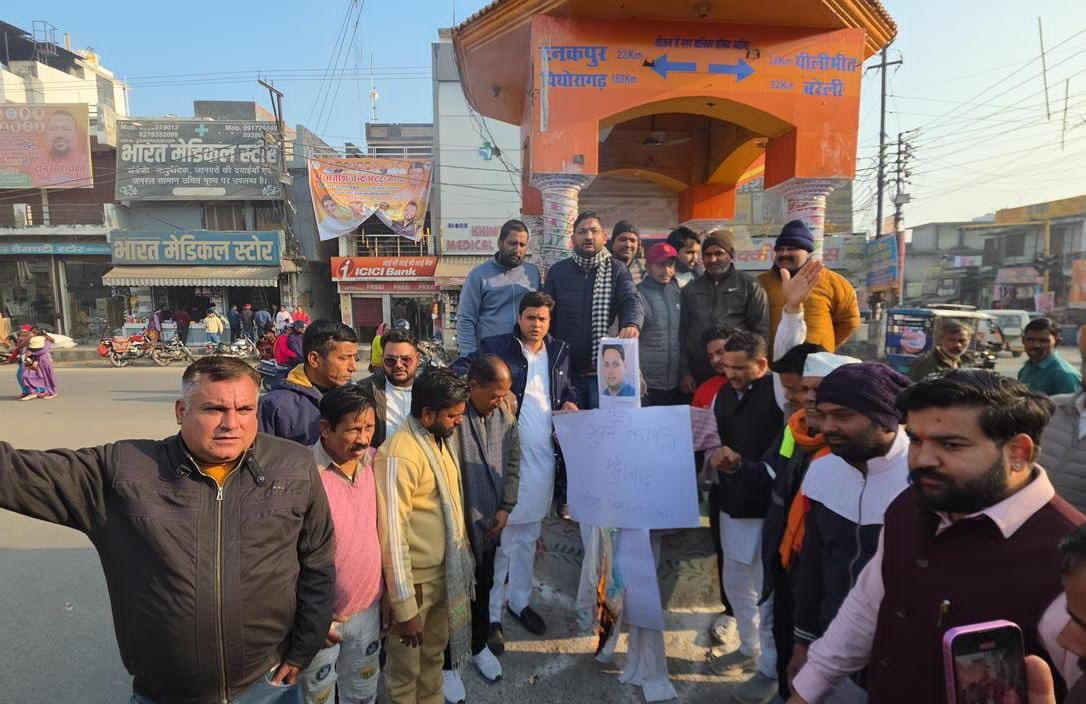 भारतीय जनता पार्टी के कार्यकर्ता एवं पदाधिकारीयो ने क्षेत्रीय विधायक भूवन कापड़ी का फूका पुतला क्षेत्रीय विधायक पर विकास योजनाओं का विरोध करने का आरोप लगाते हुए साथ ही मुख्यमंत्री पर झूठे आरोप लगाकर मुख्यमंत्री की छवि धूमिल करने का आरोप लगाते हुए मुख्य चौक पर विधायक भुवन कापड़ी के पुतले को आज के हवाले कर दिया इस अवसर पर जिला उपाध्यक्ष अमित पांडे ने कहा कि क्षेत्रीय विधायक को अपने क्षेत्र के विकास की चिंता नहीं है वह प्रदेश भर में घूम कर झूठी राजनीति करने का काम कर रहे हैं विभिन्न मुद्दों पर सरकार की छवि खराब करना चाहते हैं उन्होंने कहा कि खटीमा की जनता एवं प्रदेश की जनता क्षेत्रीय विधायक के दोगलेपन को समझ चुकी है आज मुख्य चौक पर आक्रोशित भारतीय जनता पार्टी के कार्यकर्ताओं ने क्षेत्रीय विधायक के पुतले को आग के हवाले किया और उनके विरोध मै नारे बजी की पुतला फूंकने वालों में मुख्य रूप से युवा मोर्चा के प्रदेश मंत्री सतीश भट्ट, पूर्व जिला महामंत्री सतीश गोयल, अध्यक्ष जीवन धामी ,हिमांशु बिष्ट, पूर्व मंडल महामंत्री मनोज वाधवा, ललित बोरा ,रामू भारती, नवल वाल्मीकि ,महिला मोर्चा की जिला अध्यक्ष विनीत सक्सेना, आशु भारती, रवि सक्सेना, संजय पिलख्वाल, प्रकाश आर्य ,जितेंद्र विश्वकर्मा, शुभम वाल्मीकि ,सशंक वर्मा, आदि उपस्थित थे।
