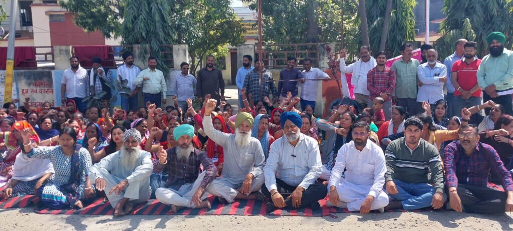 इस मौके पर बोलते हुए ब्लॉक अध्यक्ष राजेंद्र कुमार ने कहा कि न्यूनतम मजदूरी हर मजदूर का हक है और वह प्राइवेट सेक्टर में भी काम कर चुके हैं वहां पर 8 घंटे कार्य के ₹500प्रतिदिन के हिसाब से मजदूरी मिलती है। लेकिन आंगनवाड़ी कार्यकर्ता जो 5000 से लेकर ₹9000 तक काम कर रही हैं उनकी काम करने के घंटे भी तय नहीं है और यह लोग मजबूर होकर धरना प्रदर्शन कर रहे हैं राज्य सरकार को उनकी जायज मांग पर ध्यान देना चाहिए और इनका मानदेय बढ़ना चाहिए। इस मौके पर प्रदेश अध्यक्ष सलविंदर सिंह कलसी ने कहा कि न्यूनतम मजदूरी ₹600 मांग रही आंदोलन कारी आंगनबाड़ियों को आज हम लोग समर्थन देने के लिए पहुंचे हैं और हम लोग राज्य सरकार से मांग करते हैं कि जिस तरह से धूप गर्मी बरसात में सभी त्यौहार तक यहां पर मना रही हैं।राज्य सरकार को उनकी ओर ध्यान देना चाहिए मोदी के परिवार का हिस्सा यह महिलाएं भी हैं और इनको इनका जायज मानदेय मिलना ही चाहिएइस मौके पर बोलते हुए आंगनवाड़ी कार्यकर्ता सेविका कर्मचारी संगठन की जिलाध्यक्ष मनप्रीत कौर ने कहा कि आज भारतीय किसान यूनियन अराजनीतिक के प्रदेश अध्यक्ष के नेतृत्व में कार्यकारिणी के सदस्य यहां पहुंचे थे और हमारे आंदोलन को समर्थन दिया है इसके लिए हम धन्यवाद करते हैं और आशा करते हैं कि सरकार तक हमारी आवाज पहुंचेगी और हमारा मानदेय बढ़ाने सहित अन्य मांगों को पूरा किया जाएगा। इस मौके पर भारतीय किसान यूनियन अराजनैतिक के अन्य सदस्य एवं आंगनबाड़ी कर्मी मौजूद रहीं।