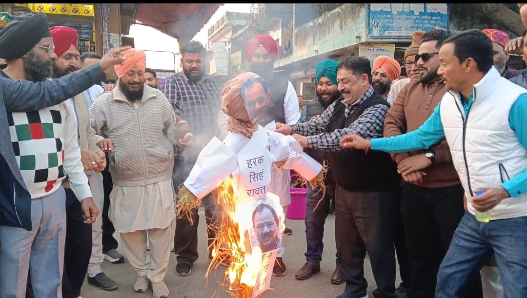 सितारगंज: कांग्रेस के वरिष्ठ नेता व पूर्व कैबिनेट मंत्री हरक सिंह रावत द्वारा एक कार्यक्रम के दौरान सिख समुदाय पर कथित रूप से आपत्तिजनक व अपमानजनक टिप्पणी किए जाने के विरोध में रविवार को सितारगंज में बड़ा विरोध प्रदर्शन देखने को मिला। नगर के मुख्य चौक पर सैकड़ों की संख्या में जुटे भाजपा कार्यकर्ताओं और सिख समाज के लोगों ने रावत के खिलाफ जमकर नारेबाजी करते हुए उनका पुतला दहन किया। प्रदर्शनकारियों ने कहा कि सिख गुरुओं ने हिंदू धर्म की रक्षा के लिए जो अतुलनीय बलिदान दिए, उसी के कारण आज हिंदू समाज सुरक्षित है, ऐसे में किसी भी नेता द्वारा सिखों पर ‘12 बज गए’ जैसी तुच्छ टिप्पणी करना न केवल ऐतिहासिक त्याग का अपमान है, बल्कि सामाजिक सौहार्द पर भी आघात है। लोगों का कहना था कि यदि इतिहास में सिख गुरु हिंदुओं की रक्षा के लिए आगे न आते तो मुगल शासक पूरे समाज को जबरन धर्मांतरण की ओर धकेल देते। वक्ताओं ने चेतावनी दी कि यदि रावत के खिलाफ कठोर कार्रवाई नहीं हुई तो आंदोलन को और व्यापक रूप दिया जाएगा। विरोध प्रदर्शन में दर्जा राज्य मंत्री इकबाल सिंह लाडी, सतीश उपाध्याय, गुरदीप सिंह चौहान, प्रिंस माटा, विजय सलूजा, संदीप बाबा, सुखबीर सिंह बेदी, भोला जोशी, अमित रस्तोगी, सचिन गंगवार, अजय गुप्ता, नवीन भट्ट निराला, धर्मा देवी, जी.एस. वेदी, निर्मल सिंह सहित बड़ी संख्या में भाजपा कार्यकर्ता, सामाजिक कार्यकर्ता और सिख समुदाय के लोग भारी संख्या में उपस्थित रहे।