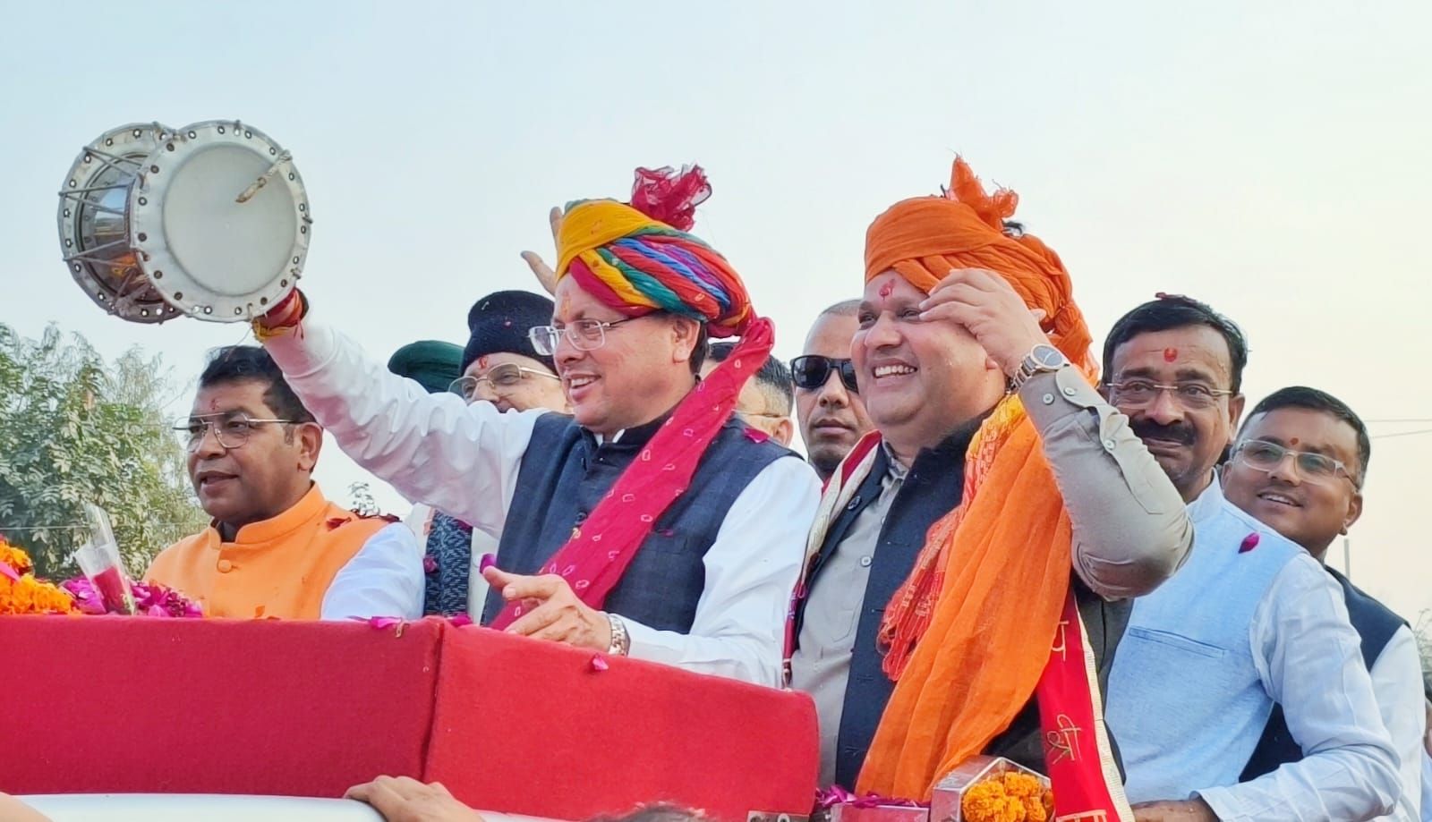 रुद्रपुर। मुख्यमंत्री पुष्कर सिंह धामी का शनिवार को रुद्रपुर आगमन किसी उत्सव से कम नहीं रहा। त्रिशूल चौक पर भव्य त्रिशूल के लोकार्पण के पश्चात मुख्यमंत्री का रोड शो एक ‘शिव बारात’ के रूप में निकला, जिसकी दिव्यता और भव्यता ने पूरे शहर को भक्तिमय कर दिया। फूलों से विशेष रूप से सुसज्जित वाहन पर सवार मुख्यमंत्री के साथ पूर्व केंद्रीय मंत्री व सांसद अजय भट्ट, महापौर विकास शर्मा, विधायक शिव अरोरा और भाजपा जिलाध्यक्ष कमल जिंदल सहित तमाम वरिष्ठ नेता मौजूद रहे। रोड शो के दौरान समूचा मार्ग ‘बम-भोले’ और ‘हर-हर महादेव’ के उद्घोष से गुंजायमान रहा, जिससे वातावरण में एक अद्भुत ऊर्जा का संचार हुआ। इस ऐतिहासिक रोड शो का आकर्षक दृश्य तब देखने को मिला जब मुख्यमंत्री पुष्कर सिंह धामी स्वयं डमरू बजाते नजर आए। ढोल-नगाड़ों और गाजे-बाजे की थाप पर थिरकते शिव भक्तों के बीच मुख्यमंत्री का यह अंदाज़ जनता के आकर्षण का केंद्र बना रहा। पूरे मार्ग पर जगह-जगह जेसीबी मशीनों के माध्यम से मुख्यमंत्री पर भारी पुष्प वर्षा की गई, जिससे सड़कें फूलों की पंखुड़ियों से पट गईं। छोलिया नृत्य दल की पारंपरिक प्रस्तुतियों ने इस आयोजन में चार चांद लगा दिए, जिसे देखने के लिए सड़कों के दोनों ओर हजारों की भीड़ उमड़ पड़ी। रुद्रपुर की ‘मिनी इंडिया’ वाली छवि इस रोड शो में साफ दिखाई दी, जहाँ पर्वतीय समाज, बंगाली समाज, सिख समाज, पंजाबी समाज, पूर्वांचल समाज और जाट समाज सहित समाज के विभिन्न वर्गों ने अपनी पारंपरिक वेशभूषा और उत्साह के साथ मुख्यमंत्री का स्वागत किया। महिला मोर्चा की भारी उपस्थिति और समाज के हर तबके द्वारा की गई पुष्प वर्षा का जवाब मुख्यमंत्री ने भी जनता पर फूल बरसाकर और हाथ हिलाकर दिया। यह आत्मीय संवाद मुख्यमंत्री और रुद्रपुर की जनता के बीच के गहरे जुड़ाव को प्रदर्शित कर रहा था। त्रिशूल चौक से शुरू हुआ यह विशाल रोड शो मुख्य मार्ग से होता हुआ गांधी पार्क पहुंचकर संपन्न हुआ। गांधी पार्क पहुंचने पर पार्टी कार्यकर्ताओं और स्थानीय निवासियों ने मुख्यमंत्री का जोरदार अभिनंदन किया। हजारों की संख्या में जुटे लोगों ने इस क्षण को अपने कैमरों में कैद किया, जिससे यह स्पष्ट हो गया कि विकास और सांस्कृतिक पुनरुत्थान के इस संगम को जनता का भरपूर समर्थन मिल रहा है।