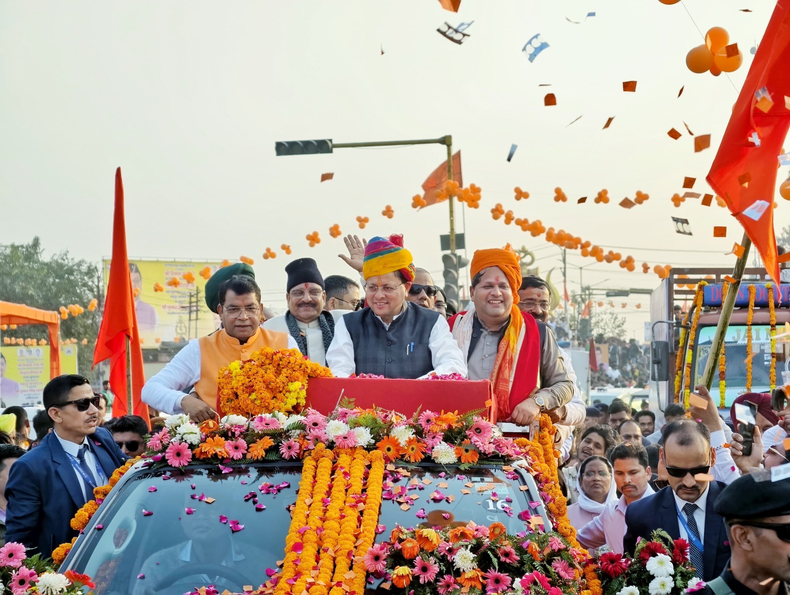 रुद्रपुर। मुख्यमंत्री पुष्कर सिंह धामी का शनिवार को रुद्रपुर आगमन किसी उत्सव से कम नहीं रहा। त्रिशूल चौक पर भव्य त्रिशूल के लोकार्पण के पश्चात मुख्यमंत्री का रोड शो एक ‘शिव बारात’ के रूप में निकला, जिसकी दिव्यता और भव्यता ने पूरे शहर को भक्तिमय कर दिया। फूलों से विशेष रूप से सुसज्जित वाहन पर सवार मुख्यमंत्री के साथ पूर्व केंद्रीय मंत्री व सांसद अजय भट्ट, महापौर विकास शर्मा, विधायक शिव अरोरा और भाजपा जिलाध्यक्ष कमल जिंदल सहित तमाम वरिष्ठ नेता मौजूद रहे। रोड शो के दौरान समूचा मार्ग ‘बम-भोले’ और ‘हर-हर महादेव’ के उद्घोष से गुंजायमान रहा, जिससे वातावरण में एक अद्भुत ऊर्जा का संचार हुआ। इस ऐतिहासिक रोड शो का आकर्षक दृश्य तब देखने को मिला जब मुख्यमंत्री पुष्कर सिंह धामी स्वयं डमरू बजाते नजर आए। ढोल-नगाड़ों और गाजे-बाजे की थाप पर थिरकते शिव भक्तों के बीच मुख्यमंत्री का यह अंदाज़ जनता के आकर्षण का केंद्र बना रहा। पूरे मार्ग पर जगह-जगह जेसीबी मशीनों के माध्यम से मुख्यमंत्री पर भारी पुष्प वर्षा की गई, जिससे सड़कें फूलों की पंखुड़ियों से पट गईं। छोलिया नृत्य दल की पारंपरिक प्रस्तुतियों ने इस आयोजन में चार चांद लगा दिए, जिसे देखने के लिए सड़कों के दोनों ओर हजारों की भीड़ उमड़ पड़ी। रुद्रपुर की ‘मिनी इंडिया’ वाली छवि इस रोड शो में साफ दिखाई दी, जहाँ पर्वतीय समाज, बंगाली समाज, सिख समाज, पंजाबी समाज, पूर्वांचल समाज और जाट समाज सहित समाज के विभिन्न वर्गों ने अपनी पारंपरिक वेशभूषा और उत्साह के साथ मुख्यमंत्री का स्वागत किया। महिला मोर्चा की भारी उपस्थिति और समाज के हर तबके द्वारा की गई पुष्प वर्षा का जवाब मुख्यमंत्री ने भी जनता पर फूल बरसाकर और हाथ हिलाकर दिया। यह आत्मीय संवाद मुख्यमंत्री और रुद्रपुर की जनता के बीच के गहरे जुड़ाव को प्रदर्शित कर रहा था। त्रिशूल चौक से शुरू हुआ यह विशाल रोड शो मुख्य मार्ग से होता हुआ गांधी पार्क पहुंचकर संपन्न हुआ। गांधी पार्क पहुंचने पर पार्टी कार्यकर्ताओं और स्थानीय निवासियों ने मुख्यमंत्री का जोरदार अभिनंदन किया। हजारों की संख्या में जुटे लोगों ने इस क्षण को अपने कैमरों में कैद किया, जिससे यह स्पष्ट हो गया कि विकास और सांस्कृतिक पुनरुत्थान के इस संगम को जनता का भरपूर समर्थन मिल रहा है।