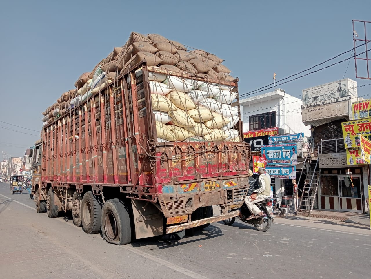 व्यापार मंडल के अनुरोध पर पुलिस द्वारा बेरी केटिंग लगाकर भारी वाहनों को भेजा जाता है बायपास मार्ग से गंतव्य को