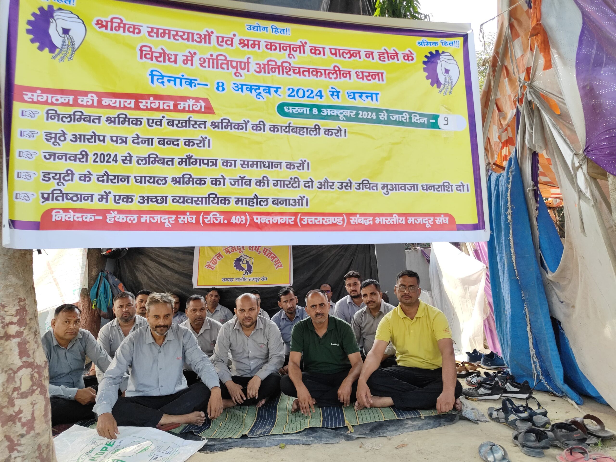 हेंकेल मज़दूर संघ पंतनगर उत्तराखंड संबद्धता भारतीय मजदूर संघ द्वारा 08 अक्टूबर 2024 से शांतिपूर्ण धरना व अनिश्चित कालीन धरना प्रारंभ किया गया है ,जिसका आज नौवा दिन गाँधी पार्क रुद्रपुर में है।