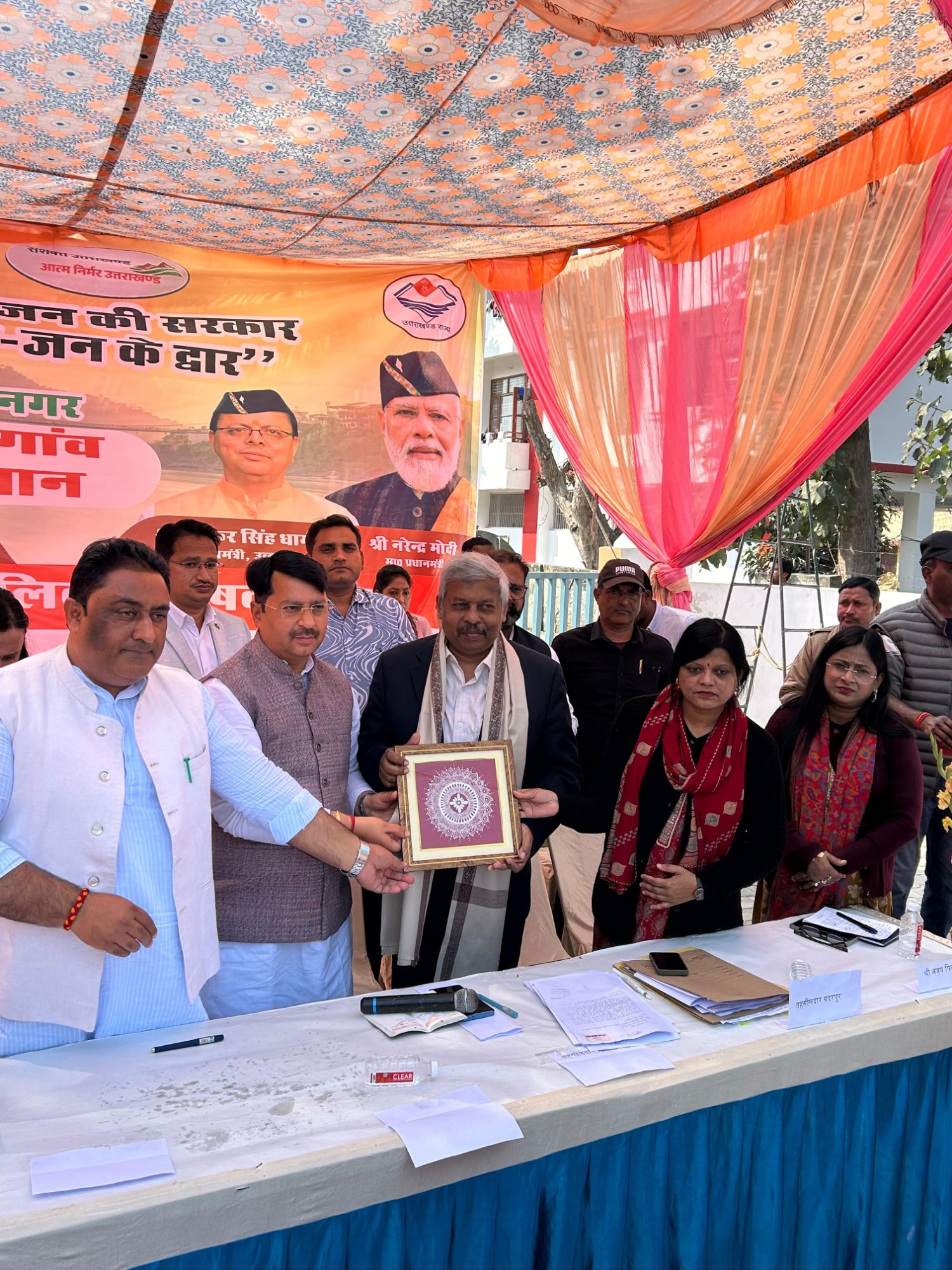 कार्यक्रम में भारतीय जनता पार्टी के प्रदेश मंत्री गुंजन सुखीजा मुख्य अतिथि के रूप में उपस्थित रहे। उन्होंने शिविर को संबोधित करते हुए कहा कि प्रधानमंत्री नरेंद्र मोदी और मुख्यमंत्री पुष्कर सिंह धामी के नेतृत्व में सरकार का लक्ष्य ‘अंत्योदय’ है—समाज के अंतिम व्यक्ति तक योजनाओं का लाभ पहुंचाना। उन्होंने कहा कि ‘जन-जन की सरकार, जन-जन के द्वार’ केवल एक नारा नहीं, बल्कि सुशासन की प्रतिबद्धता है, जिसके तहत प्रशासन स्वयं जनता की दहलीज तक पहुंच रहा है। अधिकारियों को निर्देश दिए गए हैं कि प्रत्येक पात्र व्यक्ति की समस्या का प्राथमिकता से समाधान सुनिश्चित किया जाए।दिव्यांगजनों को मिला सहारा, CSR से वितरित हुए उपकरण शिविर के दौरान सामाजिक सरोकारों को प्राथमिकता देते हुए Green India संस्था द्वारा सीएसआर फंड के माध्यम से दिव्यांगजनों को व्हीलचेयर और ई रिक्शा गाड़ी प्रदान की गईं। प्रदेश मंत्री गुंजन सुखीजा ने स्वयं अपने हाथों से ये सहायक उपकरण वितरित किए। उन्होंने संस्था के इस मानवीय प्रयास की सराहना करते हुए कहा कि जब सरकार और निजी संस्थाएं मिलकर कार्य करती हैं, तब समाज में वास्तविक परिवर्तन संभव होता है।