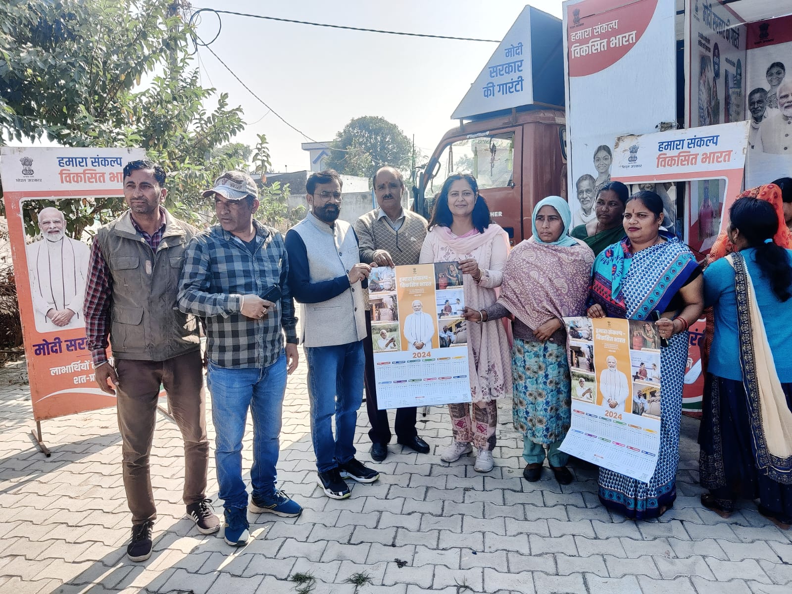 गदरपुर । विकसित भारत संकल्प यात्रा का आयोजन ग्राम सभा रतनपुरा एवं ग्राम अलखदेवी में जनप्रतिनिधि ग्राम प्रधान की अध्यक्षता में किया गया। कार्यक्रम में नूडल अधिकारी सिंचाई विभाग के एक्शन पांडे तथा कार्यक्रम संयोजक कृषि विभाग के नूडल कृषि अधिकारी अनिल अरोरा रहे। विकसित भारत संकल्प यात्रा कार्यक्रम में मुख्य वक्ता के रूप में प्रतिभाग करते हुए भाजपा किसान मोर्चा प्रदेश उपाध्यक्ष नरेश हुड़िया ने सरकार की जनकल्याणकारी नीतियों से उपस्थित ग्रामीणों को अवगत कराया और उनसे लाभ लेने की अपील की उन्होंने कहा, आज देश और प्रदेश सरकार के नेतृत्व में हर वर्ग के लोगों को मूलभूत सुविधाओं सहित अन्य जनकल्याणकारी योजनाओं का लाभ पहुंचाया जा रहा है । वही ब्लॉक के अधिकारियों ने विभिन्न योजनाओं के बारे में ग्राम वासियों को बताया तथा हर ग्रामसभा में ड्रोन के माध्यम से खेतों में दवा छिड़काव का तरीका डेमो देकर समझाया। इस दौरान कृषि विभाग के अधिकारी,मातृशक्ति एवं भाजपा किसान मोर्चा के पदाधिकारी व कार्यकर्ता तथा ग्रामवासी उपस्थित रहे।