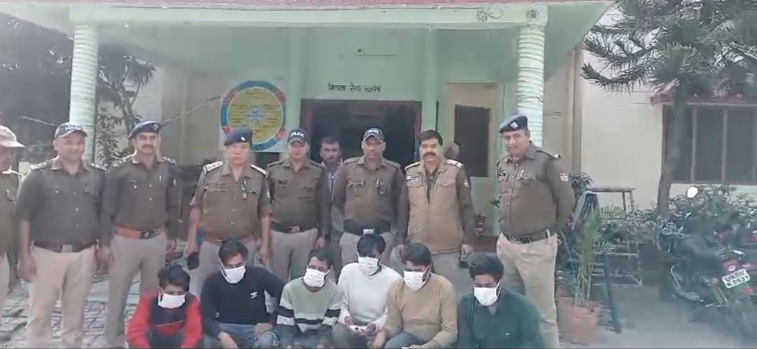 जसपुर जनपद उधम सिंह नगर में पुलिस द्वारा लगातार अवैध नशे की रोकथाम के लिए प्रयास किये जा रहे है और लगातार नशा कारोबारियों के खिलाफ कार्यवाही की जा रही है उसी क्रम में जसपुर पुलिस द्वारा अवैध नशे के खिलाफ बड़ी कार्यवाही की गई है जिसमे पुलिस ने 10.3 ग्राम स्मेक के साथ 6 नशेड़ी तस्करों को गिरफ्तार किया है जसपुर पुलिस सत्यापन अभियान के दौरान जसपुर चांद मस्जिद के पास गली नंबर 7 से नशा तस्कर इरशाद उर्फ पिंटू को 5 नशेड़ी लड़को को स्मेक का सेवन कराते हुए गिरफ्तार किया है पकड़े गये युवकों पर पुलिस ने सभी के खिलाफ एनडीपीएस एक्ट के तहत मुकदमा दर्ज कर न्यायालय के समक्ष पेश कर दिया है।मामले में जानकारी देते हुये कोतवाल जसपुर जगदीश ढकरियाल ने बताया कि जसपुर क्षेत्र में लगातार शिकायत मिल रही है कि जो नव युवक पीढ़ी है वो स्मेक पी रहे है और कुछ लोग पिला रहे है उसी के चलते कल पुलिस टीम द्वारा चांद मस्जिद के पास से इरशाद उर्फ पिंटू जो हिस्ट्रीशीटर भी है जो लोगो को अपने घर मे बैठाकर स्मेक पिलाता है उन सभी को गिरफ्तार कर कार्यवाही की गई है और कोर्ट में पेश किया जा रहा है और लगातार कार्यवाही की जा रही है बीते दिनों एक सरकारी अध्यापक को भी गिरफ्तार किया गया था और जो भी अवैध धंधों में संलिप्त है उनके खिलाफ वैधानिक कार्यवाही की जाएगी। उन्होंने कहा कि नशे के कारोबार करने वाले किसी भी व्यक्ति को किसी भी दशा में बक्शा नहीं जाएगा क्षेत्र में नशा करने वाले सभी व्यक्तियों को मेरी हिदायत है कि वह तत्काल नशे के कारोबार को बंद कर दें।