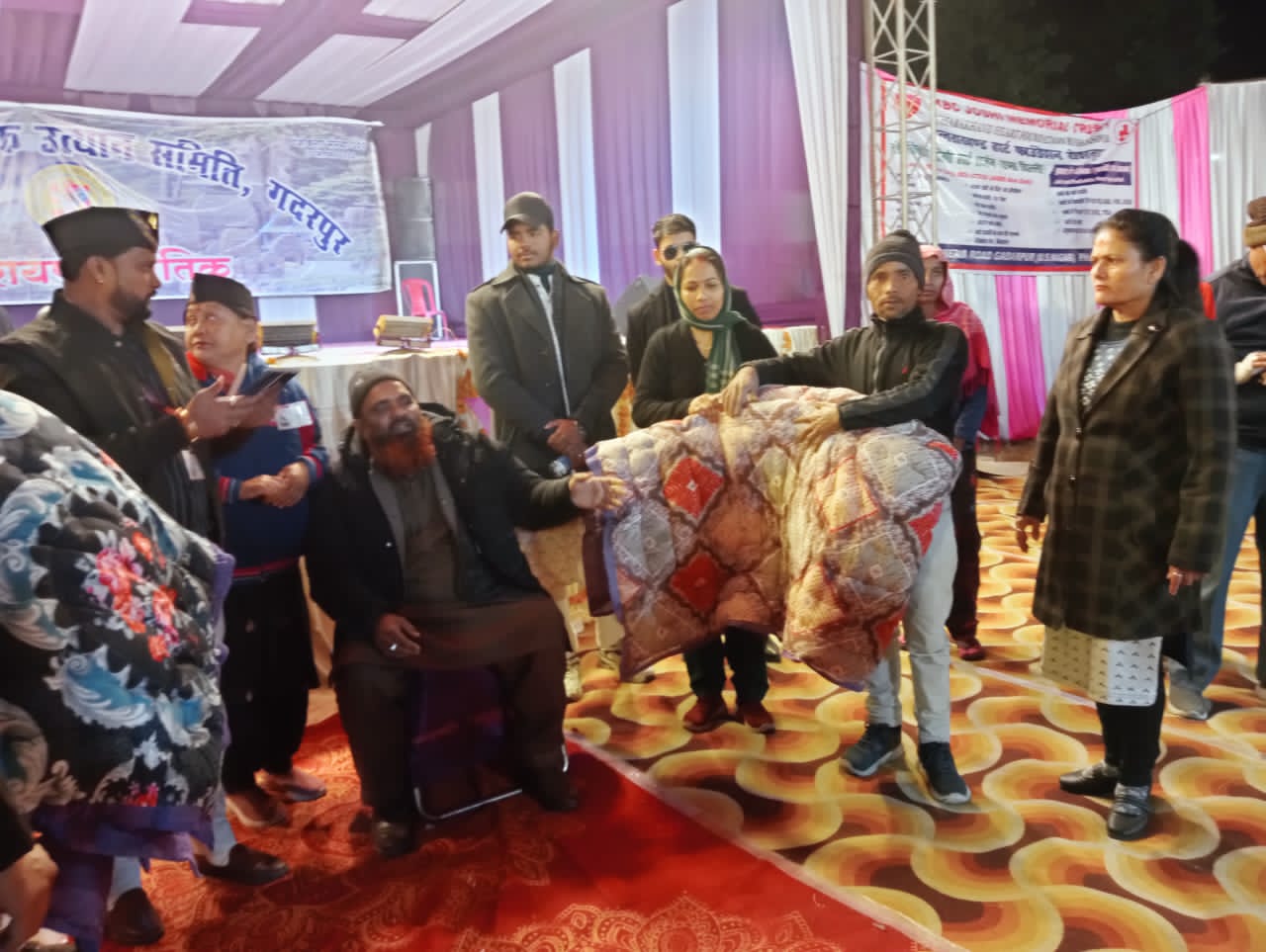 गदरपुर। लाल बादशाह के नाम से विख्यात समाजसेवी लाल मोहम्मद द्वारा ठंड से बचाव के लिए सैकड़ो वृद्ध,दिव्यांग,विधवा एवं अन्य गरीब तबके के लोगों को गर्म रजाईयां बांटकर मानवता का परिचय देते हुए उनकी जरूरतों को पूरा किया। राजकीय इंटर कॉलेज गदरपुर उधम सिंह नगर में आयोजित उत्तरायणी कौतिक मेले कार्यक्रम के दौरान लाल मोहम्मद द्वारा पर्वतीय उत्थान समिति के सहयोग से सैकड़ो पात्रों को गर्म रजाइयों का वितरण किया गया। लाल मोहम्मद का कहना था कि सभी जरूरतमंदों एवं आर्थिक रूप से पिछड़े परिवारों की सहायता करना हम सभी का फर्ज बनता है उनके द्वारा पूर्व में भी समाज सेवा की कई कार्य किया जा चुके हैं जो कि लगातार निरंतर जारी हैं।