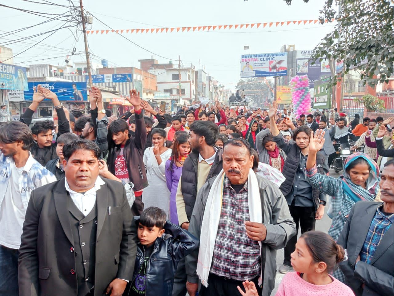 गदरपुर । यीशु भक्त सत्संग समिति के द्वारा ग्राम राम जीवनपुर नंबर 3 से क्रिसमस के पावन पर्व के उपलक्ष में एक महा रैली का आयोजन किया गया। रैली ग्राम रामजीवनपुर से मुख्य बाजार होते हुए दिनेशपुर मोड़ से वापस ग्राम राम जीवन पुर पहुंचकर संपन्न हुई । रैली में यीशु भक्ति सत्संग समिति के अध्यक्ष पास्टर सुरेंद्र सागर द्वारा प्रभु यीशु के जन्म दिवस के बारे में प्रकाश डाला गया ,वहीं उनके द्वारा कहा गया कि यीशु मसीह संपूर्ण संसार के लोगों के लिए उद्धार का मार्ग हैं । उनके द्वारा संसार के कल्याण के लिए प्रार्थना भी की गई । महारैली में अध्यक्ष सुरेंद्र सागर ,उपाध्यक्ष सरिता सागर के अलावा सदस्य अजय कुमार, सुमित कुमार, अभिषेक मसीह, रेखा सिंधी, सौरभ, पूजा, नेहा, कोमल, भावना, वंदना, शिवा, अभि, सुमन आदि शामिल रहे।