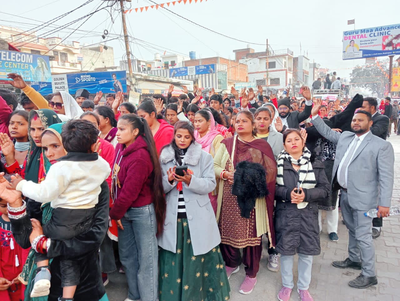 गदरपुर । यीशु भक्त सत्संग समिति के द्वारा ग्राम राम जीवनपुर नंबर 3 से क्रिसमस के पावन पर्व के उपलक्ष में एक महा रैली का आयोजन किया गया। रैली ग्राम रामजीवनपुर से मुख्य बाजार होते हुए दिनेशपुर मोड़ से वापस ग्राम राम जीवन पुर पहुंचकर संपन्न हुई । रैली में यीशु भक्ति सत्संग समिति के अध्यक्ष पास्टर सुरेंद्र सागर द्वारा प्रभु यीशु के जन्म दिवस के बारे में प्रकाश डाला गया ,वहीं उनके द्वारा कहा गया कि यीशु मसीह संपूर्ण संसार के लोगों के लिए उद्धार का मार्ग हैं । उनके द्वारा संसार के कल्याण के लिए प्रार्थना भी की गई । महारैली में अध्यक्ष सुरेंद्र सागर ,उपाध्यक्ष सरिता सागर के अलावा सदस्य अजय कुमार, सुमित कुमार, अभिषेक मसीह, रेखा सिंधी, सौरभ, पूजा, नेहा, कोमल, भावना, वंदना, शिवा, अभि, सुमन आदि शामिल रहे।