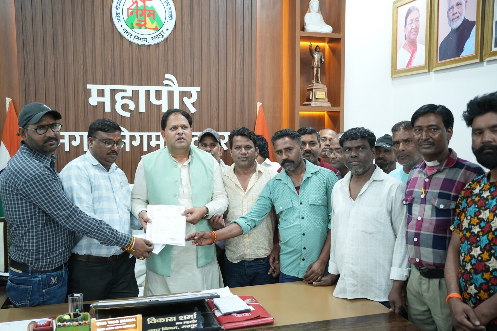 रुद्रपुर। देवभूमि उत्तराखंड सफाई कर्मचारी संघ के पदाधिकारियों ने नगर निगम में लंबे समय से संविदा और दैनिक वेतन पर कार्यरत कर्मचारियों के विनियमितीकरण की मांग को लेकर महापौर विकास शर्मा और नगर आयुक्त शिप्रा जोशी पांडे से मुलाकात कर उन्हें एक औपचारिक ज्ञापन सौंपा। इस दौरान प्रतिनिधिमंडल ने शासन द्वारा निर्धारित नियमावली का हवाला देते हुए नगर निगम में तैनात दैनिक वेतन भोगी, कार्यप्रभारित, संविदा, नियत वेतन, अंशकालिक तथा तदर्थ रूप से नियुक्त कार्मिकों को स्थायी किए जाने की गुहार लगाई।