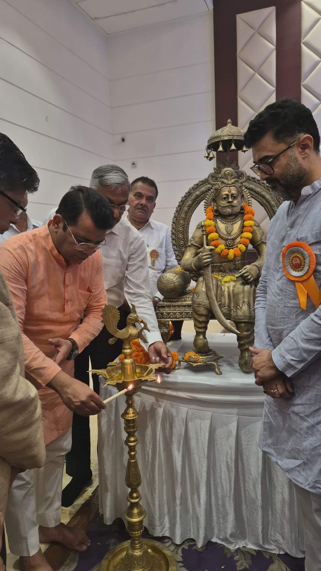 रुद्रपुर। महाराजा अग्रसेन की 5148 वी जयंती के अवसर पर एंबिएंस रिजॉर्ट में संगीत संध्या का आयोजन हुआ, वही कार्यक्रम का शुभारम्भ अग्रसेन की प्रतिमा पर दीप प्रजलित कर हुआ,कार्यक्रम में शामिल हुए क्षेत्रीय विधायक शिव अरोरा का अग्रवाल सभा के लोगो द्वारा स्वागत अभिनन्दन किया, वही विधायक शिव अरोरा ने कार्यक्रम को सम्बोधित करते हुए कहा महाराजा अग्रसेन ने अग्रवाल समाज की नीव रखी थी ओर आज अग्रवाल समाज के लोग समाज की सेवा व धार्मिक कार्यों में बढ़ चढ़कर अपनी भूमिका निभाते है ओर अग्रवाल समाज के लोग उद्योग जगत से लेकर हर क्षेत्र में समाज देश की सेवा कर रहे है, महाराजा अग्रसेन के आदर्श पर चालकर आप सभी ने अपनी अलग पहचान बनाई, इसके लिये आप सभी बधाई के पात्र है ओर क्षेत्र के विधायक के रूप में आपको जिस प्रकार सहयोग चाहिए होगा उसके लिये सदैव प्रयास करेंगे।विधायक शिव अरोरा ने भजन संध्या में आयोजित सुन्दर प्रस्तुति की भी प्रशंसा की।