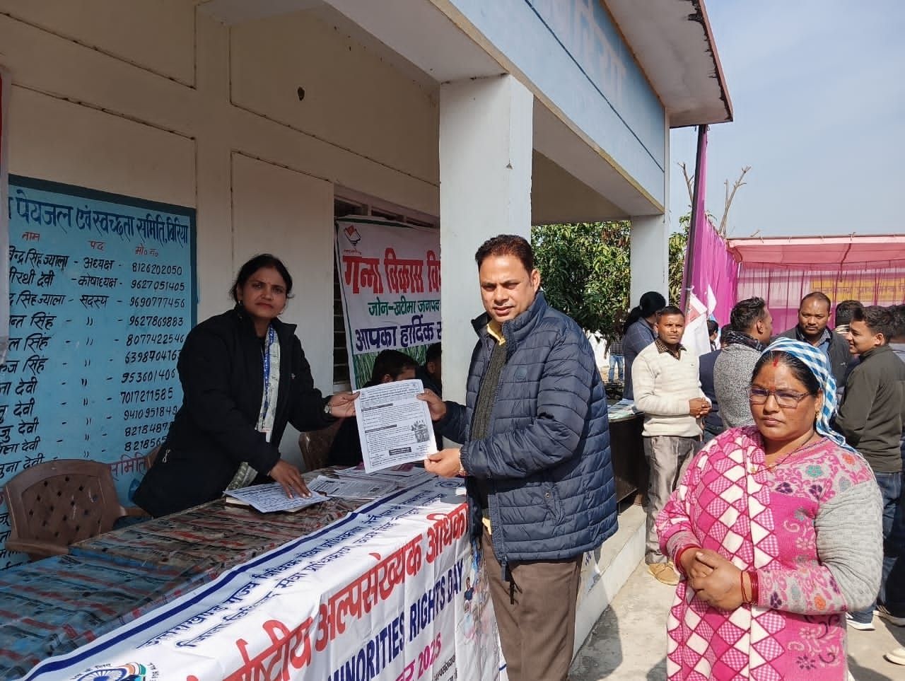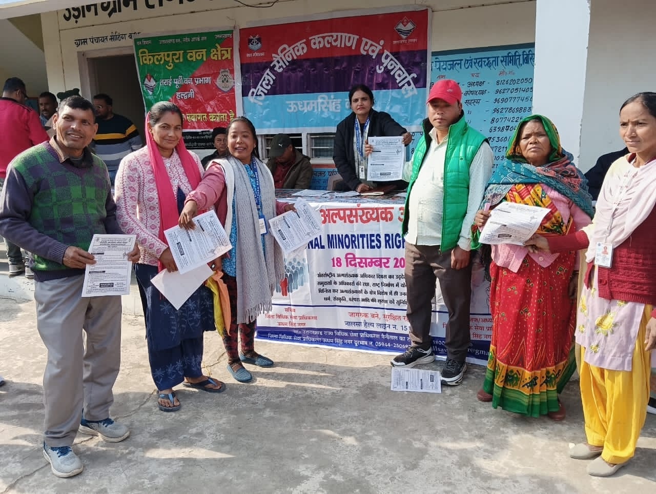 खटीमा के ग्राम बिरिया पंचायत भवन में लगाया गया बहुउद्देशीय शिविर जिसकी अध्यक्षता ग्राम प्रधान अमर सिंह ने की और शिविर के माध्यम से ग्रामीण क्षेत्र वासियों को अंतर्राष्ट्रीय अल्पसंख्यक अधिकार दिवस के बारे में जानकारी दी इस मौके पर अल्पसंख्यक समाज के सम्मानित नागरिकों एवं जनप्रतिनिधियों के साथ महत्वपूर्ण संवाद कार्यक्रम आयोजित किया गया बैठक के दौरान आवास सुरक्षा पुलिस कार्यवाही स्थानीय विवाद व अन्य समस्याओं से जुड़ी कई खास मुद्दों पर चर्चाएं की गई साथ ही बताया गया कि अल्पसंख्यक आयोग दिवस को प्रदेश भर में जागरूकता दिवस के रूप में मनाया जा रहा है और जनपद के सभी थानों एवं अलग-अलग जगह कार्यक्रम आयोजित कर अल्पसंख्यक समाज को उनके अधिकारों सुरक्षा और सम्मान के प्रति जागरूक किया जा रहा है उन्होंने स्पष्ट किया कि कानून सबके लिए समान है और हम लोग बिना भेदभाव हर नागरिक की सुरक्षा व न्याय के लिए प्रतिबद्ध है कार्यक्रम में इसी के साथ बताया गया कि तो उसमें भी अपनी समस्याओं का समाधान करा सकते हैं इस मौके पर उप जिला अधिकारी खटीमा , खटीमा ब्लॉक प्रमुख,खटीमा से कांग्रेस विधायक भूवन कापड़ी सहायक समाज कल्याण अधिकारी, पशु विभाग से अधिकारी श्याम सिंह भंडारी,एवं सैनिक विभाग से भी अधिकारी मौजूद थे, चिकित्सा विभाग के भी अधिकारी पी एल बी गीता शर्मा आशा राणा प्रीती राना आदि उपस्थित रहे।