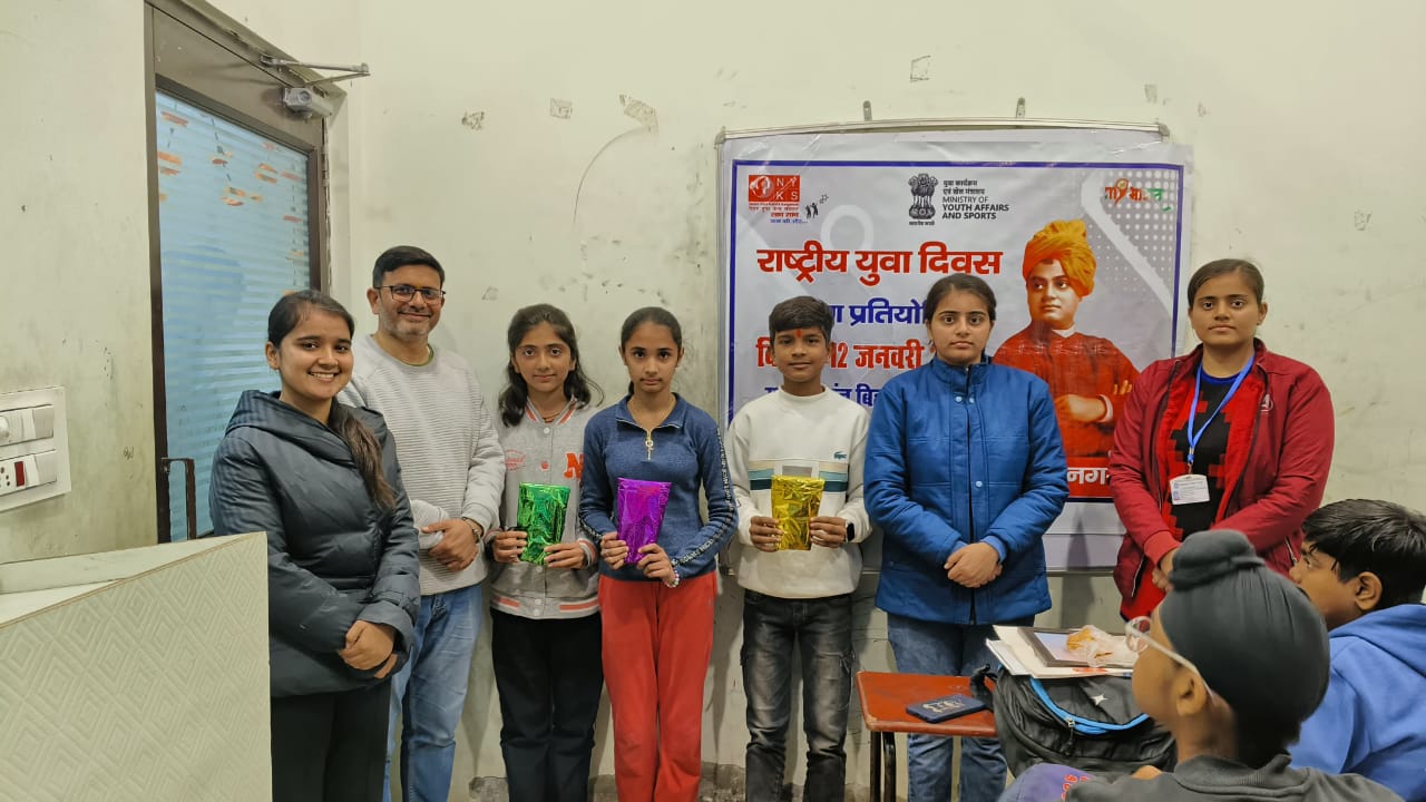 विजयी प्रतिभागियों को स्वामी इंस्टिट्यूट के डायरेक्टर विशाल सक्सेना व पूर्व राष्ट्रीय स्वयंसेवक मुस्कान चावला के द्वारा स्मृति चिन्ह प्रदान कर पुरस्कृत किया गया। कार्यक्रम संयोजक तनीशा चावला ने कहा कि प्रत्येक वर्ष स्वामी विवेकानंद जी के जन्म दिवस के अवसर पर राष्ट्रीय युवा दिवस मनाया जाता है। स्वामी विवेकानंद ने पश्चिमी देशों को भारत के योग और वेदांत से जोड़ा । स्वामी विवेकानंद जी द्वारा अमेरिका के शिकागो में आयोजित धर्म सम्मेलन में दिया गया भाषण आज भी स्मरणीय है । राष्ट्रीय युवा दिवस का उद्देश्य युवाओं का स्वामी विवेकानंद जी के जीवन विचारों और संघर्षों से से प्रेरित होकर अपने लक्ष्य की और निरंतर आगे बढ़ते रहना हैं । स्वामी विवेकानंद ने कहा हैं कि उठो, जागो और तब तक मत रूको जब तक तुम्हे लक्ष्य की प्राप्ति न हो जाए।निर्णायक की भूमिका प्राध्यापिका पलक बठला ने निभाई।भाषण प्रतियोगिता में प्रथम साध्वी,