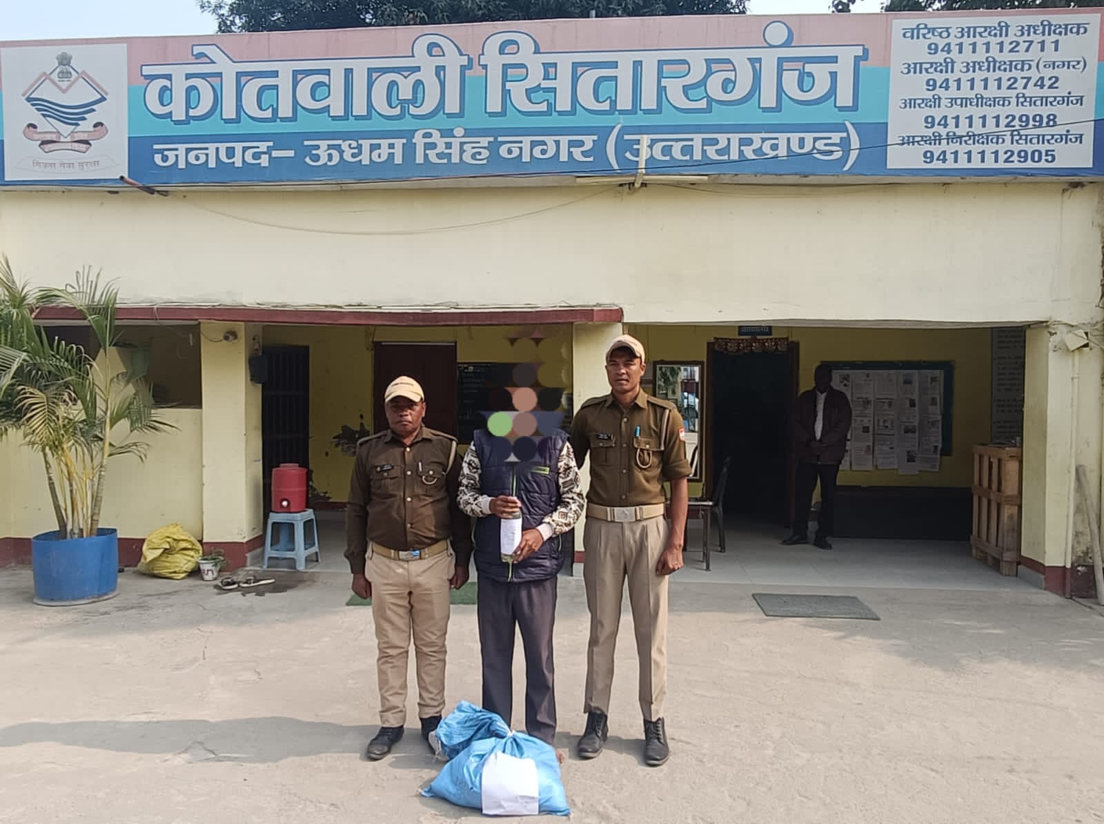 सितारगंज वर्तमान में मुख्यालय स्तर से प्रचलित अभियान नशा मुक्त देवभूमि के तहत वरिष्ठ पुलिस अधीक्षक द्वारा जनपद में अवैध शराब व अवैध मादक पदार्थ बिक्री व तस्करी करने वालों पर अंकुश लगाये जाने हेतु चलाये जा रहे अभियान के अंन्तर्गत श्रीमान् पुलिस अधीक्षक नगर/श्रीमान पुलिस अधीक्षक अपराध /श्रीमान क्षेत्राधिकारी सितारगंज महोदय के दिशा-निर्देशन तथा प्रभारी निरीक्षक सितारगंज के निकट नेतृत्व में दिनांक 21.11.2025 को उ0नि0 जगत सिंह शाही द्वारा मय पुलिस बल के दौराने चैकिंग चौकी सिडकुल क्षेत्र से अभियुक्त मंजीत सिंह पुत्र जंगीर सिंह निवासी ग्राम पुर्वी उकरौली थाना सितारगंज,जनपद ऊधम सिह नगर, उम्र- 22 वर्ष को गिरफ्तार कर अभियुक्त के कब्जे से प्लास्टिक के नीले रंग के कट्टे में 25 पाउच (25 लीटर ) कच्ची शराब बरामद की गयी ।उ0 नि0 की दाखिला फर्द बरामदगी के आधार पर कोतवाली सितारगंज में FIR NO-382/2025 धारा -60(1) आबकारी एक्ट बनाम मंजीत सिंह उपरोक्त पंजीकृत किया गया । कोतवाली सितारगंज पुलिस द्वारा क्षेत्र में अवैध शराब के खिलाफ अभियान आगे भी लगातार जारी रहेगा। इस मौके पर उ0 नि0 जगत सिंह शाही चौकी प्रभारी सिडकुल कोतवाली सितारगंज उधम सिंह नगर
