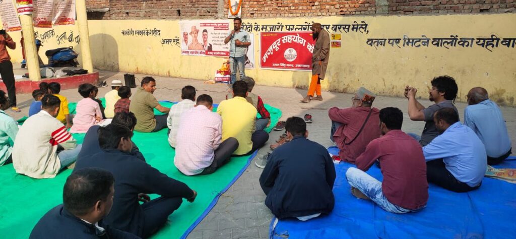 वक्ताओं ने कहा कि आज पूरे मुल्क को हिंदू मुस्लिम के खतरनाक बंटवारे में उलझा दिया गया है और आम जनता की मूल मुद्दे रोजगार, महंगाई को गायब कर दिया गया है। मज़दूर विरोधी चार लेबर कोड के द्वारा मज़दूरों को बंधुआ बनाने की प्रक्रिया तेज हो गई है, भ्रष्टाचार अपने चरम पर पहुंच गया है। और इन तमाम मसलों से ध्यान बँटाने के लिए एक बार फिर चुनावी समर में सारे दल उत्तर पड़े हैं। सत्ताधारी भाजपा जनता को बेवकूफ बनाने में पूरी ताकत से जुटी हुई है, पूरे तंत्र को अपनी मुट्ठी में करके आम जनता पर बुलडोजर चला रही है।