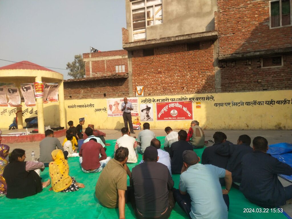 वक्ताओं ने कहा कि शहीद-ए-आज़म ने जिस आजाद भारत का सपना देखा था वह आज ना केवल अधूरा है बल्कि पूरा समाज गुलामी की नई बेड़ियों में जकड़ गया है, मुनाफे की खुली लूट जारी है। शहीद-ए-आज़म ने धर्म सांप्रदायिकता और जातिवाद पर अपने लेखों के जरिए लगातार सामाजिक कुरीतियों के खिलाफ हमला बोला था। आज क्रांतिकारियों के विचारों को आम जनमानस में ले जाने की जरूरत है ताकि इंसानियत, अमन और बराबरी वाले समता मूलक समाज के निर्माण में आगे बढ़ा जा सके और क्रांतिकारी शहीदों के सपनों को साकार किया जा सके।इससे पूर्व मज़दूर सहयोग केन्द्र द्वारा 19 मार्च से रुद्रपुर की विभिन्न बस्तियों- रवींद्र नगर, कल्याणी व्यू, जगतपुरा, दरिया नगर, खेड़ा आदि में व्यापक व सघन अभियान चलाया गया, जो 23 मार्च तक जारी रहेगा।आज के कार्यक्रम में मज़दूर सहयोग केन्द्र के मुकुल, इंकलाबी मजदूर केंद्र के सुरेंद्र, काकोरी यादगार कमेटी से साजिद भाई, CIE इण्डिया श्रमिक संगठन से बालकरन , श्रमिक संयुक्त मोर्चा महासचिव चंद्रमोहन लखेड़ा, नेस्ले कर्मचारी संघ से महेन्द्र राणा, एडविक कर्मचारी संगठन से सुधीर, टीवीएस लुकास श्रमिक संगठन से बसंत गोस्वामी, एलजीबी मजदूर संघ से गोविन्द राकेट, रिद्धि सिद्धि कर्मचारी संघ, रमेश चन्द्र, करोलिया लाइटिंग इम्पलाइज यूनियन से हरेन्द्र सिंह, प्रभात आदि मौजूद रहे।