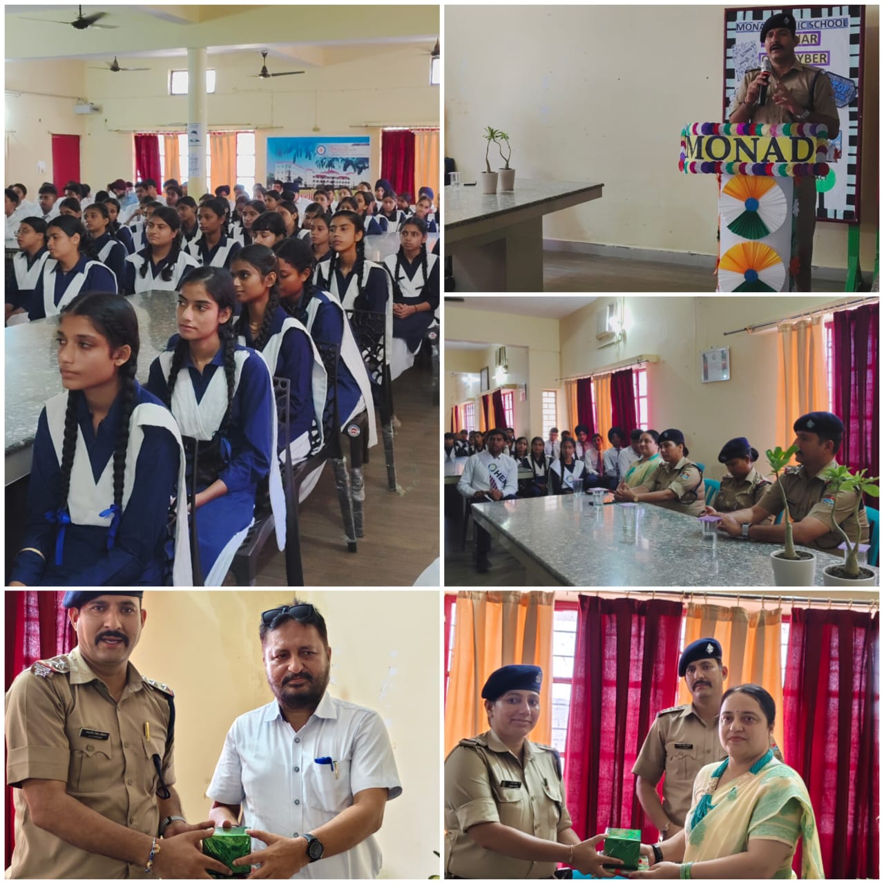गदरपुर । मोनाड पब्लिक स्कूल गदरपुर, उधम सिंह नगर में पुलिस के तत्वाधान में आयोजित सेमिनार में साईबर अपराध से संबद्धता का आयोजन किया गया,बच्चों को साईबर अपराध से बचने की जानकारी दी गई तथा जागरूक करने का प्रयास किया गया। वक्ताओं ने कहा इसमें साइबर सुरक्षा एक बहुत ही महत्वपूर्ण विषय बन गया है हम डिजिटल दुनिया में अधिक से अधिक शामिल होते जा रहे हैं। हमारे डेटा और प्रमाणित करने के लिए साईबर हमलो से बचने की आवश्यकता और भी अधिक होती जा रही है । इस अवसर पर गदरपुर थानाध्यक्ष श्री जसवीर सिंह चौहान, साईबर सेल प्रभारी रुद्रपुर सब इंस्पेक्टर श्रीमती रीता चौहान,श्री मोहन बोहरा और श्री संदीप जी उपस्थित थे। उनके इस प्रयास के लिए विद्यालय प्रबंधन ने उनकी सदस्यता ग्रहण की और उन्हें सम्मानित किया गया। इस अवसर पर विद्यालय के वकील श्रीमती नेहा भारद्वाज, श्री संजय सिंह, श्री अजित सिंह, श्री सजल डाबर, श्रीमती प्रेरणा डाबर, श्रीमती मीनाक्षी रावत और सभी शिक्षक एवं शिक्षिकाएं उपस्थित थे।