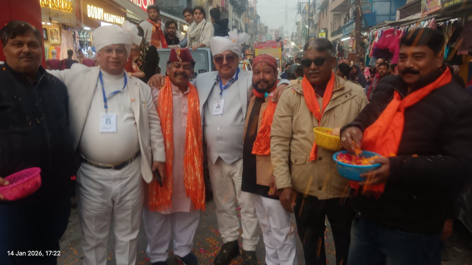 उत्तराखखण्ड के लोक पर्व उत्तरायणी घुघुतिया त्योहार के अवसर पर निकलने वाली शोभा यात्रा का शिवसेना परिवार द्वारा मीरा मार्ग चौराहे पर पुष्प वर्षा कर शोभायात्रा का स्वागत एवं शोभायात्रा में शामिल श्रद्धालुओं को जलपान (आलू के गुटके) का वितरण कराया गया। शिव सेना प्रदेश उपाध्यक्ष रूपेंद्र नागर ने समस्त उत्तराखंड वासियों को उत्तरायणी घुघुतिया त्योहार की बधाई देते हुए कहा कि देवभूमि उत्तराखंड की सांस्कृतिक धरोहर का प्रतीक उत्तरायणी मेला कुमाऊं की सांस्कृतिक की पहचान का अनोखा उत्सव है। जिसमें पारंपरिक वेशभूषा में श्रद्धालुओं ने शोभायात्रा में भाग लिया। यात्रा में आकर्षक झांकियों के माध्यम से धार्मिक, सांस्कृतिक संदेश दिए गए। जो एक संस्कृति को संजोए रखने का सुंदर प्रयास रहा। इस दौरान शिव सेना प्रदेश उपाध्यक्ष रूपेंद्र नागर, कुमाऊं मंडल अध्यक्ष हेमंत कुमार भईयू, कुमाऊं मंडल सचिव पदम पाल, जिला अध्यक्ष त्रिलोक सिंह, महानगर अध्यक्ष सुनील गुप्ता, महानगर उपाध्यक्ष प्रमोद आर्या, संगठन मंत्री अशोक सिंधी, सलाहकार सुशील गुप्ता,कार्यकारी महानगर अध्यक्ष मनोज गुप्ता,महानगर सचिव पूरन सागर, पुरुषोत्तम सिंह बिट्टू, व्यापारी नेता दिनेश अग्रवाल (दीपू ) पवन नागर,. दीपक राजपूत, छात्र नेता आयुष नागर,अंशु जोशी, सागर कश्यप, गुरविंदर आहूजा,राजू गुप्ता, पिंटूसाहू,सूरजजोली, शिवम जायसवाल, रमेश गुप्ता नवीन गुप्ता. अमन नागर.. आदि लोगसम्मिलित थे।
