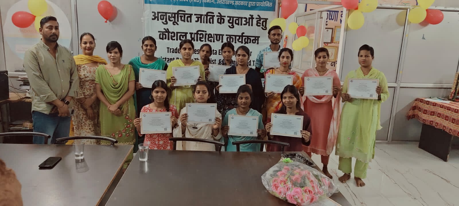 युवा एवं प्रसाद विभाग द्वारा आयोजित अनुसूचित जाति के प्रतिभागियों के लिए कौशल विकास प्रशिक्षण का हुआ समापनकार्यक्रम में मुख्य अतिथि के रूप में दशमेश इंटरप्राइजेज से  देवेंद्र सिंह अपनी धर्मपत्नी जतन दीप कौर के साथ उपस्थित रहे l इसके साथ खटीमा में अनुसूचित जाति के लिए चल रहे कौशल विकास प्रशिक्षण कार्यक्रम का भी समापन किया गया l जिसमें अतिथि के रूप में खटीमा के ब्लॉक अधिकारी श्री दिलशाद ब्लॉक कमांडर भी उपस्थित रहे l सितारगंज में चल रहे प्रशिक्षण कार्यक्रम में 120 पप्रतिभागियों ने विभिन्न ट्रेड जैसे डाटा एंट्री ऑपरेटर, असिस्टेंट ब्यूटी थैरेपिस्ट, सेल्फ एंप्लॉयमेंट टेलर एवम् खटीमा में 60 प्रतिभागियों ने असिस्टेंट ब्यूटी थैरेपिस्ट ने प्रतिभाग किया l सहयोगी संस्था इन्फों इंटरनेशनल रही l प्रतिभागियों