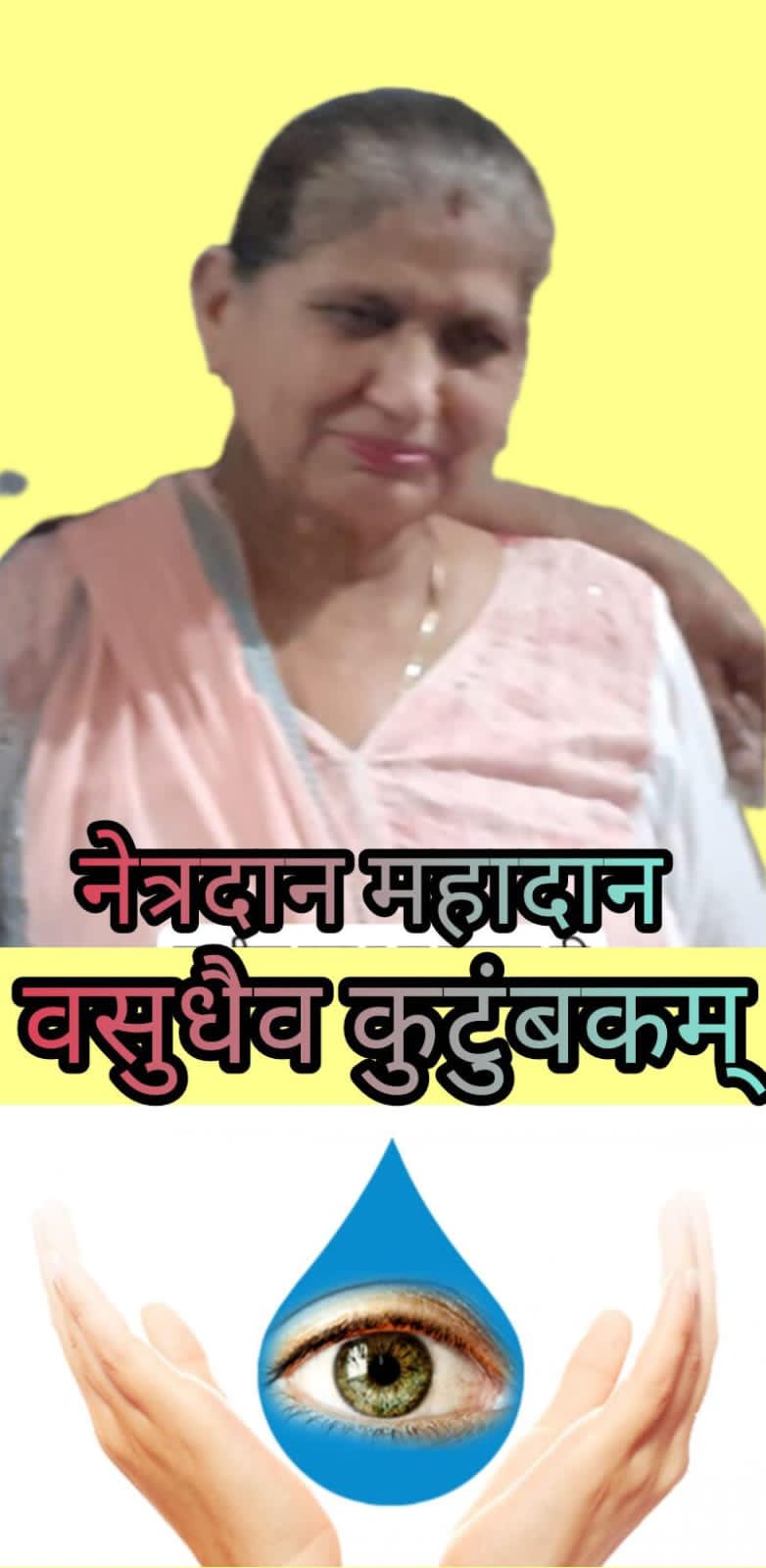 ब्रह्मलीन श्रीमति आशा अरोरा जी की आँखें करेंगी किन्हीं दो लोगो के जीवन मे उजाला, देश दुनिया को दिया महादान का संदेश।