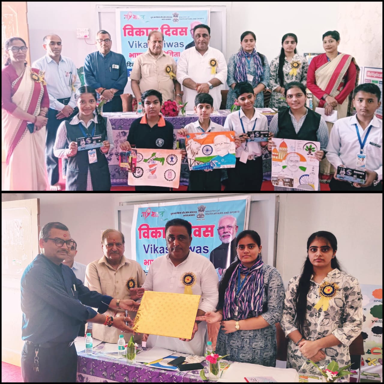 गदरपुर । मेरा युवा भारत उधम सिंह नगर के तत्वाधान में राष्ट्रीय युवा स्वयंसेवक तनिशा चावला द्वारा सरस्वती विद्या मंदिर गदरपुर में प्रधानमंत्री श्री नरेंद्र मोदी जी के जन्मदिवस के उपलक्ष्य में विकास दिवस कार्यक्रम का आयोजन किया गया । कार्यक्रम का शुभारम्भ मुख्य अतिथि के रूप में पहुंचे नगरपालिका परिषद् गदरपुर अध्यक्ष मनोज गुम्बर मिंटू के द्वारा मां सरस्वती के चित्र के सम्मुख द्वीप प्रज्वलित व पुष्प अर्पित कर किया गया। राष्ट्रीय युवा स्वयंसेवक तनिशा चावला के द्वारा मुख्य अतिथि मनोज गुम्बर मिंटू को स्मृति चिन्ह भेंटकर उनका स्वागत किया गया । कार्यक्रम में मोदी जी के विकास कार्यों व योजनाओं पर चित्रकला प्रतियोगिता व भाषण प्रतियोगिता का आयोजन किया गया । चित्रकला प्रतियोगिता में प्रथम स्थान पर दिव्य शर्मा व द्वितीय व तृतीय स्थान पर क्रमशः अदीबा खान व अनमोल रहे । भाषण प्रतियोगिता में प्रथम स्थान पर लक्ष्मण सिंह बिष्ट व द्वितीय व तृतीय स्थान पर क्रमशः आदित्य व रिया रहे । सभी विजेताओं को नगरपालिका अध्यक्ष मनोज गुम्बर मिंटू, राष्ट्रीय युवा स्वयंसेवक तनिशा चावला, पूर्व राष्ट्रीय युवा स्वयंसेवक मुस्कान चावला, विद्यालय के प्रधानाचार्य सुभाष सिंह शर्मा व सुबोध कुमार शर्मा द्वारा स्मृति चिन्ह भेंटकर पुरस्कृत किया गया। प्रतियोगिता में निर्णायक की भूमिका कवि व साहित्यकार सुबोध कुमार शर्मा, विद्यालय के वरिष्ठ अध्यापक नंदकिशोर, विद्यालय की वरिष्ठ अध्यापिका साधना सिंह ने निभाई । मनोज गुम्बर ने उपस्थित प्रतिभागियों को मोदी जी के जन्मदिन की शुभकामनायें प्रेषित की । कार्यक्रम में अंकित, अक्षिता, धीमा, काजल, जय, हिमांशु, विजय, विशाल, धीरज, आराध्या आदि प्रतिभागी उपस्थित रहे।