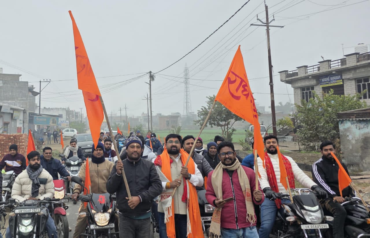 शक्ति फार्म श्रद्धा और भक्ति के रंगों में रगे राधे–राधे मंदिर प्रांगण इन दिनों भक्ति रस में डूबा हुआ है। आगामी 2 जनवरी से प्रारंभ होने वाली साप्ताहिक श्रीमद्भागवत कथा एवं विशाल भंडारे के शुभ प्रचार हेतु रविवार को क्षेत्र में भव्य ध्वज यात्रा व बाइक रैली निकाली गई, जिसने पूरे नगर को भक्तिमय बना दिया।राधे–राधे लिखे ध्वजों के साथ निकली यह रैली मंदिर प्रांगण से प्रारंभ होकर सुभाष चौक सहित नगर के प्रमुख मार्गों से गुज़री। “राधे–राधे” के गगनभेदी जयघोष से वातावरण पूरी तरह भक्तिरस में डूब गया। हर ओर श्रद्धा, उल्लास और आध्यात्मिक ऊर्जा का अद्भुत संगम देखने को मिला। आयोजकों ने जानकारी देते हुए बताया कि इस पावन अवसर पर पंजाब के पठानकोट के सुप्रसिद्ध कथावाचक पं. रविनंदन शास्त्री जी के श्रीमुख से श्रीमद्भागवत कथा का रसपान कराया जाएगा। कथा 2 जनवरी से प्रारंभ होकर एक सप्ताह तक चलेगी, वहीं समापन अवसर पर विशाल भंडारे का आयोजन भी किया जाएगा। भागवत प्रचार मंडल कमेटी के अध्यक्ष रिपुसूदन मंडल ने समस्त धर्मप्रेमी श्रद्धालुओं से अपील करते हुए कहा कि अधिक से अधिक संख्या में पहुंचकर कथा श्रवण कर अपने जीवन को धन्य बनाएं। इस भक्तिमय यात्रा में चेयरमैन सुमित मंडल, पूर्व चेयरमैन सुनील विश्वास, अजित हालदार, विपिन डालमिया, सव्यसाची हालदार, अरविंद मंडल, अभिजीत हालदार, गोविंद पोखरिया, निरंजन, निखिल मंडल, समीरन मंडल, प्रकाश सरकार, तारक प्रमाणिक, किशन शर्मा, मनमोहन, बृजवासी, नारायण, गोविंद कीर्तुनिया, हरविलास विश्वास, सुनीता विश्वास, बासुदेव मांझी, पलाश हालदार,अमित विश्वास सहित बड़ी संख्या में श्रद्धालु उपस्थित रहे। पूरे क्षेत्र में भक्ति, प्रेम और सद्भावना का अनुपम वातावरण देखने को मिला, जिससे यह आयोजन नगरवासियों के लिए अविस्मरणीय बन गया।
