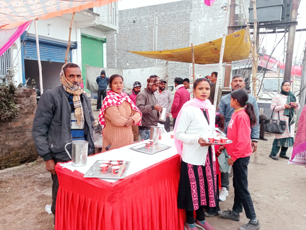 गदरपुर । गुरु गोविंद सिंह जी के प्रकाश पर आयोजित नगर कीर्तन के दौरान सकैनिया रोड पर एक आर्थिक रूप से पिछड़े परिवार द्वारा भी संगत को अपनी सामर्थ्य के अनुसार चाय का लंगर लगाकर सेवा की गई। सब्जी की दुकान लगाने वाले परिवार के विनोद कुमार,निर्देश कुमार,सोनू,रामकिशोर ,