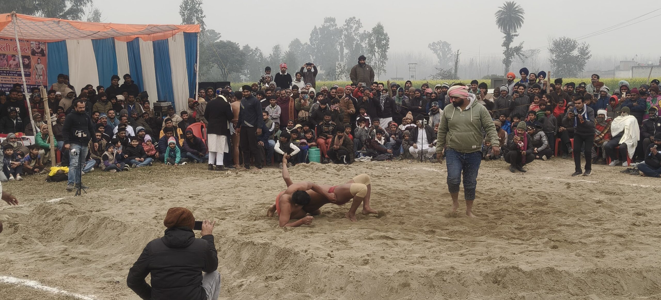 गदरपुर । नगर में पहली बार आयोजित हुए दंगल/ कुश्ती में नामी गिरामी पहलवानों ने अपने दांव पेंच से दर्शकों को उत्साहित किया । बृहस्पतिवार को रविवार बाजार के मैदान में आयोजित तीन दिवसीय विराट कुश्ती/दंगल के पहले दिन पूर्व सभासद समाज सेवी मोहम्मद आलम की ओर से अपने मरहूम वालिद छोटे पहलवान की याद में आयोजित कराए गए कुश्ती दंगल को लेकर कुश्ती के शौकीनों में बेहद उत्साह दिखाई दिया । कुश्ती मुकाबले के पहले दिन सोहेल पहलवान ने कोबरा पहलवान को हराया,वहीं मथुरा से आए रामू पहलवान विजेता रहे । रोमांचक मुकाबले अयोध्या से आए बजरंगी पहलवान और बिहार से आए भवानी पहलवान के बीच रहा । रोमांचक मुकाबले में बजरंगी पहलवान ने भवानी पहलवान को हराया । कुश्ती का आंखों देखा हाल सचिन गुप्ता और शिवा पहलवान ने सुनाया विधायक अरविंद पांडे भी कुश्ती मुकाबले में पहुंचे और खिलाड़ियों का उत्साह वर्धन किया । इस मौके पर मोहम्मद आलम, लाल मोहम्मद उर्फ लाल बादशाह सहित तमाम लोग मौजूद रहे।