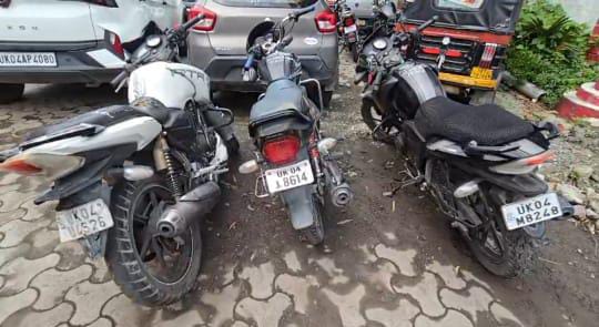 हल्द्वानी शहर में लगातार हो रही बाइक चोरी की घटनाओं का पुलिस ने बड़ी सफलता के साथ खुलासा किया है। पुलिस ने तीन शातिर चोरों को गिरफ्तार करते हुए तीन चोरी की मोटरसाइकिलें बरामद की हैं। इस पूरे मामले का खुलासा एसएसपी नैनीताल प्रहलाद नारायण मीणा ने प्रेस वार्ता के माध्यम से किया।हल्द्वानी क्षेत्र में बाइक चोरी की बढ़ती घटनाओं को गंभीरता से लेते हुए एसएसपी मीणा ने एसपी सिटी श्री प्रकाश चंद्र व सीओ हल्द्वानी श्री नितिन लोहनी को जांच के निर्देश दिए थे। आदेश के तहत प्रभारी निरीक्षक कोतवाली हल्द्वानी श्री राजेश कुमार यादव के नेतृत्व में एक विशेष टीम गठित की गई। टीम ने चोरी की घटनाओं के आस-पास लगे सैकड़ों सीसीटीवी कैमरों की जांच की और मुखबिरों को सक्रिय किया निगरानी के बाद पुलिस टीम ने तीनों अभियुक्तों कोउत्तराखण्ड मुक्त विश्वविद्यालय के पास, जीतपुर नेगी क्षेत्र के जंगल में छिपे होने की सूचना पर घेराबंदी कर गिरफ्तार कर लिया।अभियुक्तों से पूछताछ में हुआ बड़ा खुलासा।।आरोपी आशीष और हिमांशु ने बताया कि उन्होंने मिलकर बेस अस्पताल हल्द्वानी की पार्किंग से दो मोटरसाइकिलें और नानक स्वीट्स के पास से एक मोटरसाइकिल चोरी की थी।मोहम्मद हसन ने भी बाइक को इन्हीं से खरीदने की बात स्वीकार की। पूछताछ में तीनों ने यह भी बताया कि वे पूर्व में भी चोरी के मामलों में जेल जा चुके हैं। पुलिस टीम को मिलेगा इनाम एसएसपी प्रहलाद नारायण मीणा ने पुलिस टीम के सराहनीय कार्य पर उन्हें ₹2500 नकद पुरस्कार देने की घोषणा की है।