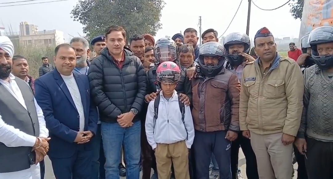 सितारगंज देश में चल रहे सड़क सुरक्षा अभियान के तहत सितारगंज में कैबिनेट मंत्री सौरभ बहुगुणा नें परिवहन विभाग के सात हेलमेट से वंचित लोगों को मुफ्त हेलमेट वितरण किये। 16 जनवरी से आगामी 14 फरवरी तक देश में यातायात नियमों का पालन करने के लिए सड़क सुरक्षा अभियान चलाया जा रहा है जिसके तहत हेलमेट वितरण कार्यक्रम के बाद अग्रसेन ट्रस्ट से स्कूली बच्चों द्वारा सड़क सुरक्षा जागरूक अभियान रैली निकाली गई जिसमें कैबिनेट मंत्री सौरभ बहुगुणा और परिवहन विभाग के अधिकारी मौजूद रहे। कैबिनेट मंत्री सौरभ बहुगुणा ने कहा लोगों की सेफ्टी के लिए हेलमेट वितरण किए गए हैं उन्होंने आप जनता से अपील की है बाइक और स्कूटी पर हेलमेट लगाकर ही चलें जिससे आपकी सुरक्षा बनी रहे। परिवहन विभाग के इंटर सेक्टर प्रभारी आनंद गुप्ता ने बताया पूरे देश में सड़क सुरक्षा अभियान चलाया जा रहा है जिसके तहत लोगों को जागरूक किया जा रहा है उन्होंने कहा सडक दुर्घटनाओं में ज्यादा तर संख्या बाइक सबार बिना हेलमेट की होती है इसलिए हेलमेट से वंचित लोगों को मुफ्त हेलमेट वितरण किए गए हैं यह जागरूकता अभियान 14 फरवरी तक चलता रहेगा।