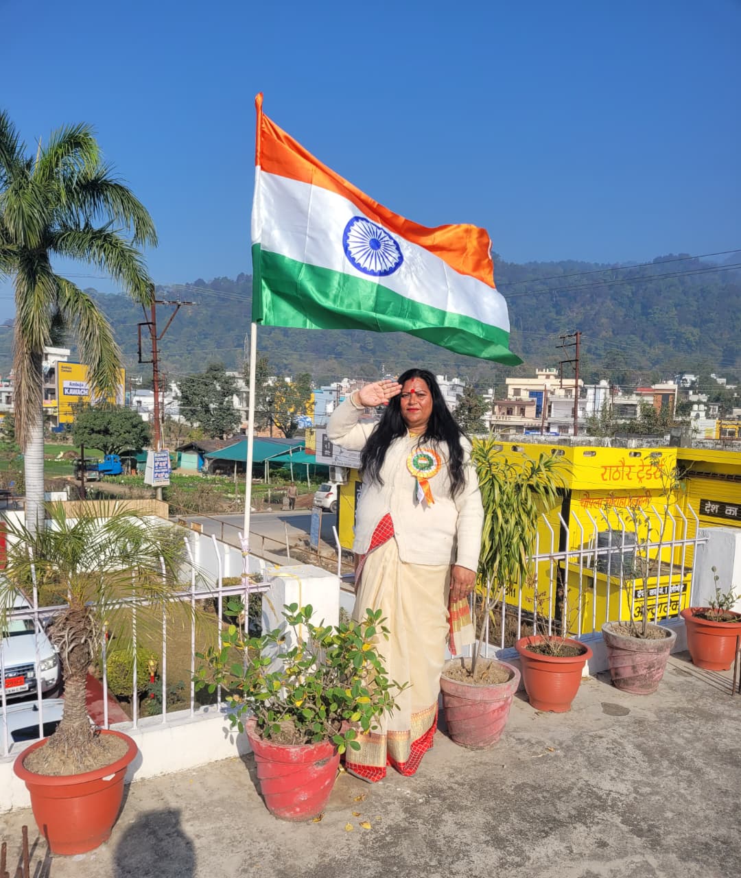 हल्द्वानी77वें गणतंत्र दिवस के अवसर पर सरवती देवी मेमोरियल ट्रस्ट के तत्वावधान में चौपला चौराहा स्थित ट्रस्ट कार्यालय में भव्य गणतंत्र दिवस समारोह का आयोजन किया गया। कार्यक्रम की अध्यक्षता करते हुए ट्रस्ट अध्यक्ष डॉ. रेनू शरण ने ध्वजारोहण किया और क्रांतिवीर शहीदों को भावपूर्ण श्रृद्धांजलि अर्पित की।