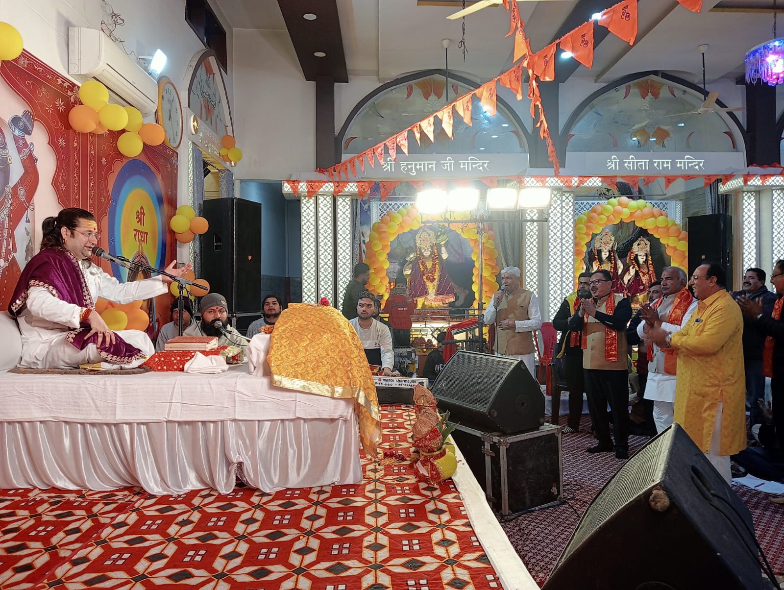 गदरपुर । श्री सनातन धर्म मन्दिर बुध बाजार गदरपुर में मंदिर के वार्षिक उत्सव एवं बसंत पंचमी के उपलक्ष में श्रीमद् भागवत कथा महोत्सव के समापन पर मंदिर के मुख्य पुजारी आचार्य पंडित शिव प्रसाद अग्निहोत्री जी द्वारा पूजन करवाया गया । सहारनपुर से पधारे प्रसिद्ध कथा वाचक आचार्य देशमुख वशिष्ठ जी द्वारा श्रीमद् भागवत कथा के समापन पर सभी को कथा में वर्णित किए गए सनातन सिद्धांतों को ग्रहण करने का आह्वान किया गया । इस दौरान श्रद्धालुओं ने मंत्र मुग्ध होकर कथा श्रवण की, कथा श्रवण हेतु भारी संख्या में महिला एवं पुरुष श्रद्धालु उपस्थित थे। कार्यक्रम समापन पर मंदिर कमेटी अध्यक्ष राजकुमार भुड्डी एवं अन्य पदाधिकारियों द्वारा आचार्य देशमुख वशिष्ठ एवं अन्य गणमान्यों का स्मृति चिन्ह भेंटकर सम्मान किया गया । इस अवसर पर पालिकाध्यक्ष मनोज कुमार ,भाजपा प्रदेश मंत्री गुंजन सुखीजा,वेद बजाज ,हरिश्चंद्र छाबड़ा, लेखराज नागपाल, लेखराज भुड्डी सहित तमाम लोग शामिल रहे।